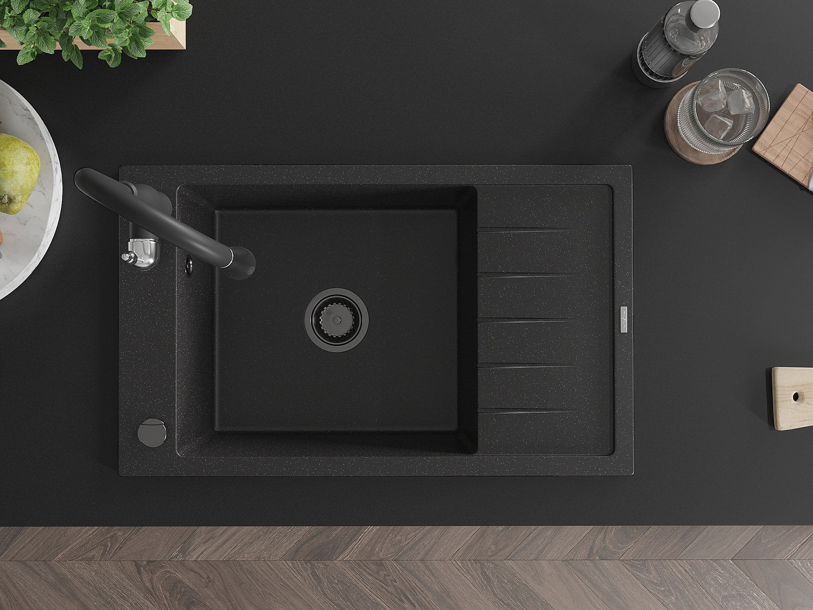 The sink is made of high quality granite. It is an elegant and, above all, practical complement to every kitchen, regardless of its style. High quality and granite durability ensure many years of use.