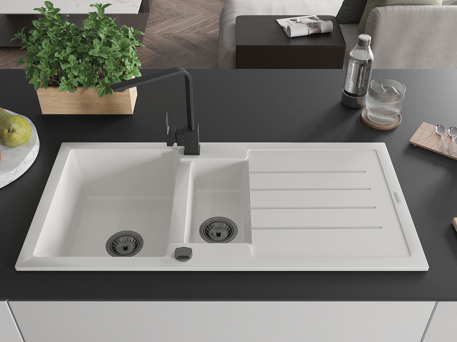 The surface of the sink is resistant to stains and discoloration, thanks to which it is easy to clean and retains its color for a long time. Aesthetic and practically complementing every kitchen.