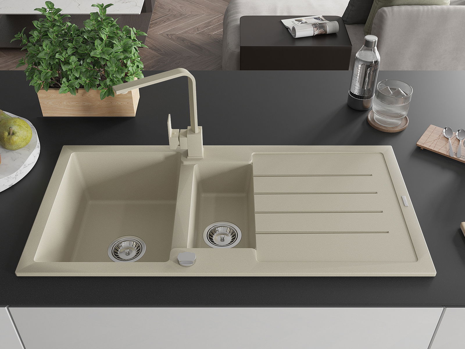 The sink is made of high quality granite. It is an elegant and, above all, practical complement to every kitchen, regardless of its style. High quality and granite durability ensure many years of use.