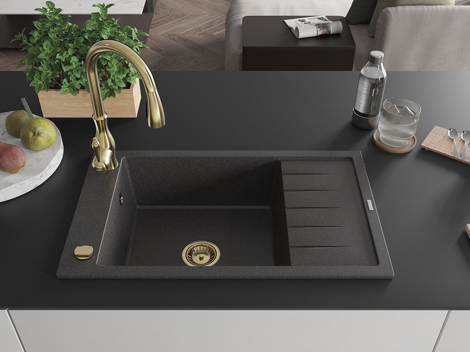 The sink is made of high quality granite. It is an elegant and, above all, practical complement to every kitchen, regardless of its style. High quality and granite durability ensure many years of use.