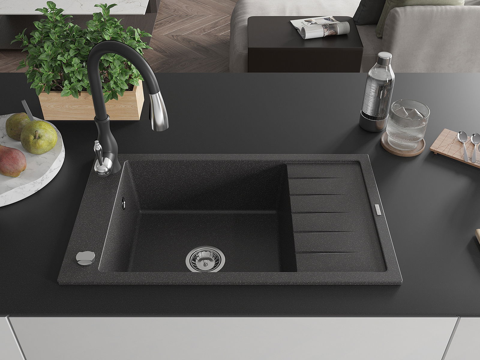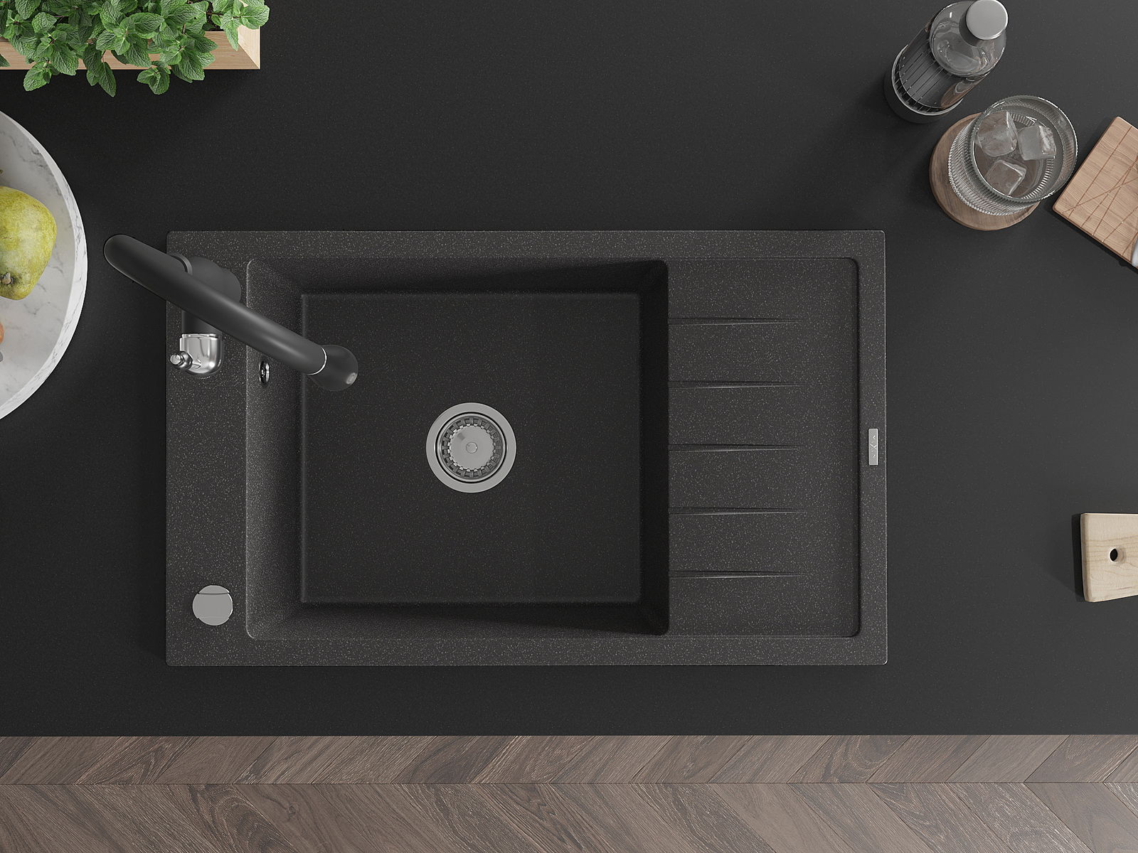 The sink is made of high quality granite. It is an elegant and, above all, practical complement to every kitchen, regardless of its style. High quality and granite durability ensure many years of use.