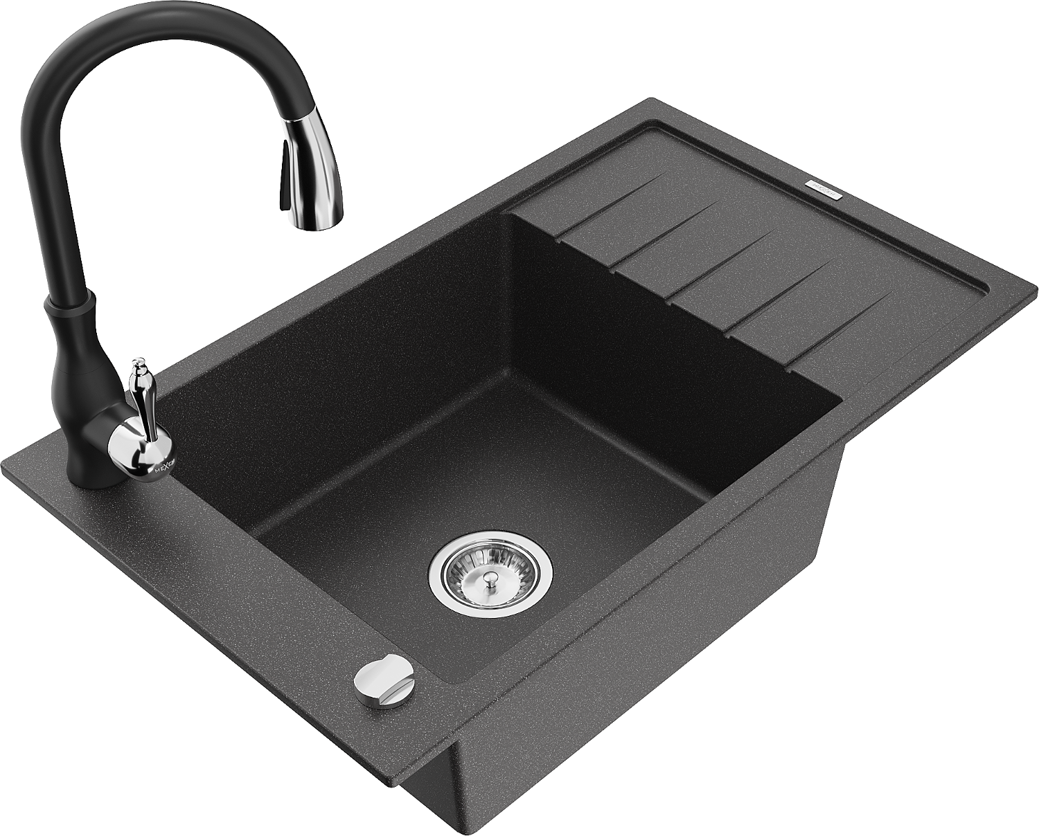 Mexen Elias 1-bowl granite sink with drainer and Savita kitchen tap, speckled black - 6511-76-672601-70