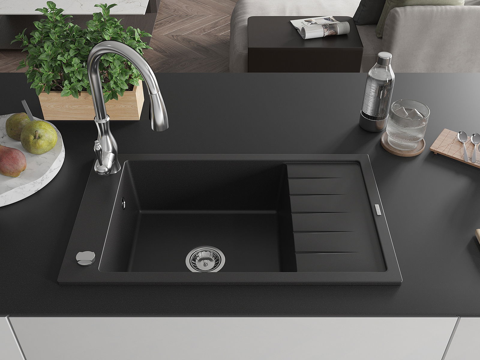The sink is made of high quality granite. It is an elegant and, above all, practical complement to every kitchen, regardless of its style. High quality and granite durability ensure many years of use.