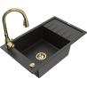 Mexen Elias 1-bowl granite sink with drainer and Savita kitchen tap, black - 6511-77-672601-50