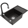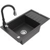 Mexen Elias 1-bowl granite sink with drainer and Savita kitchen tap, black - 6511-77-672601-70