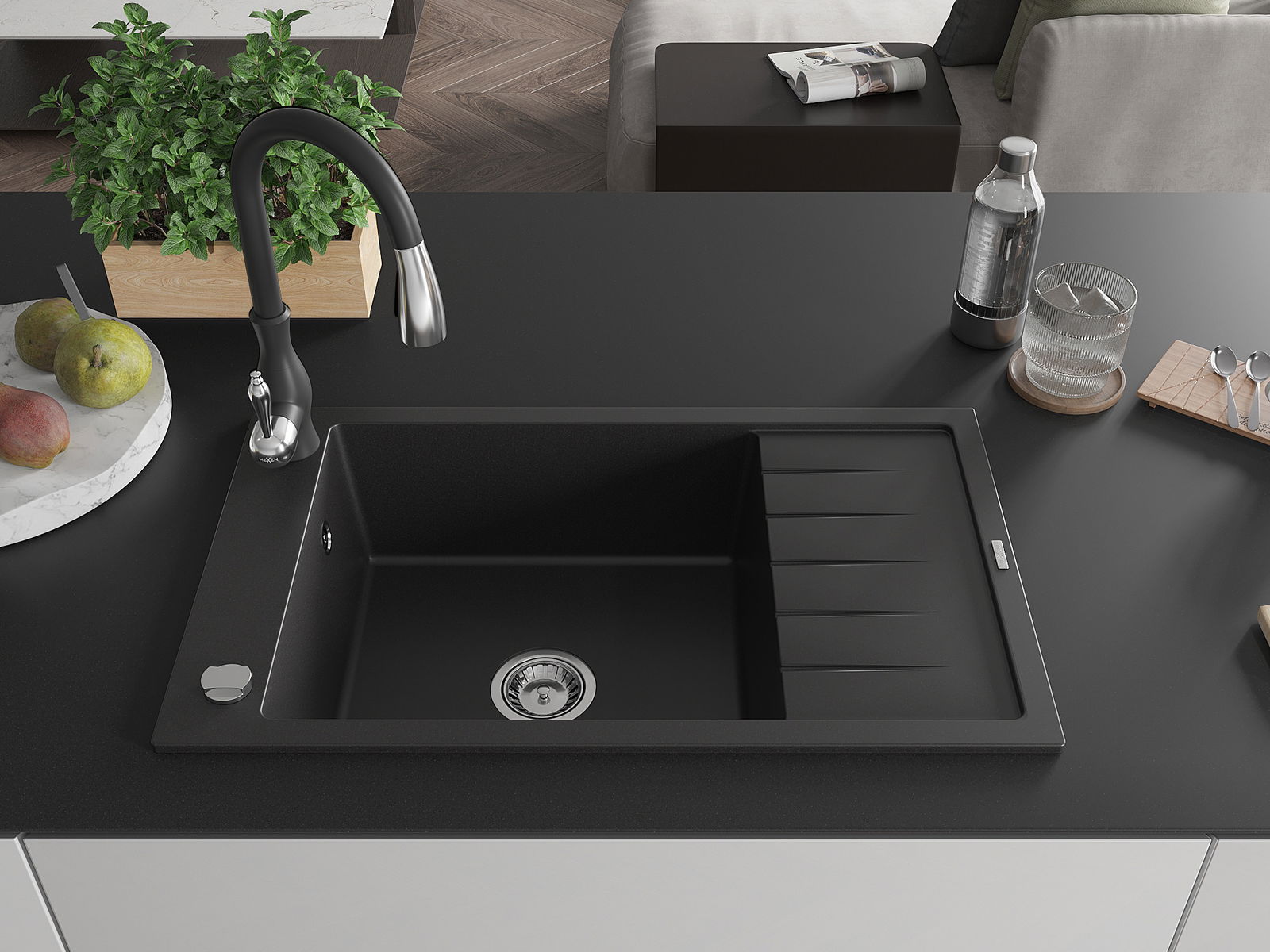 The sink is made of high quality granite. It is an elegant and, above all, practical complement to every kitchen, regardless of its style. High quality and granite durability ensure many years of use.