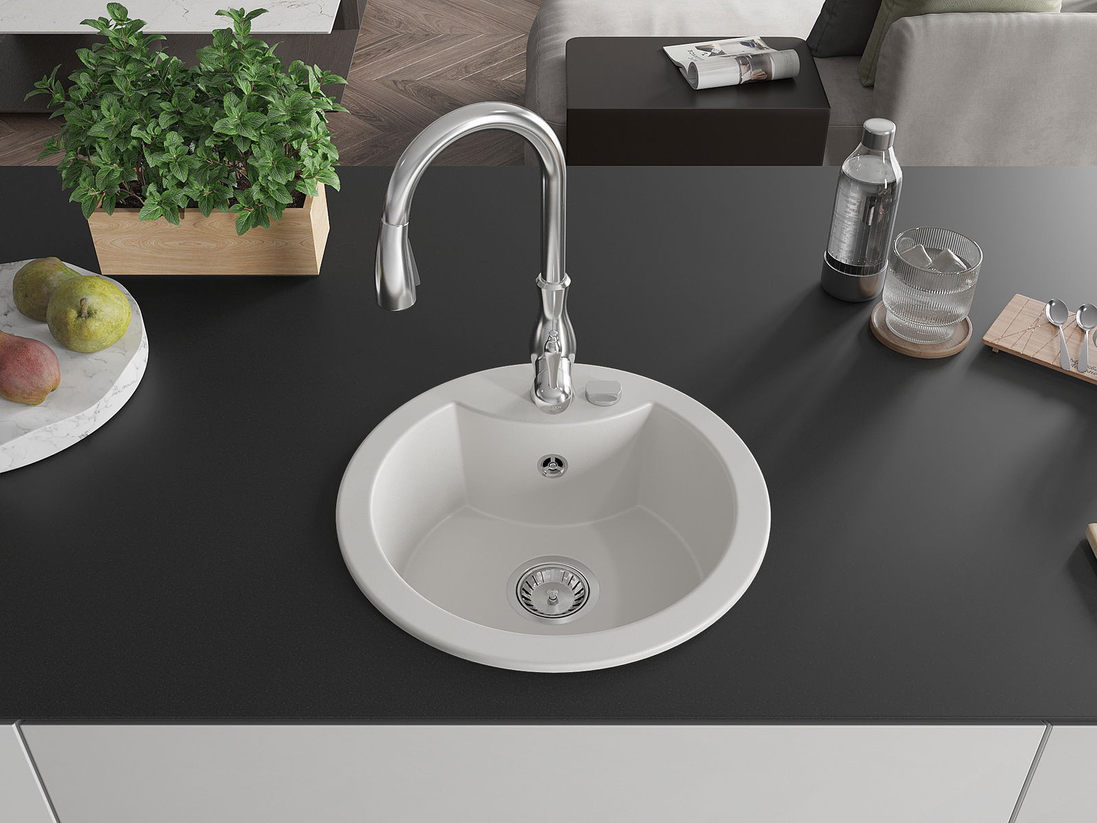 The sink is made of high quality granite. It is an elegant and, above all, practical complement to every kitchen, regardless of its style. High quality and granite durability ensure many years of use.