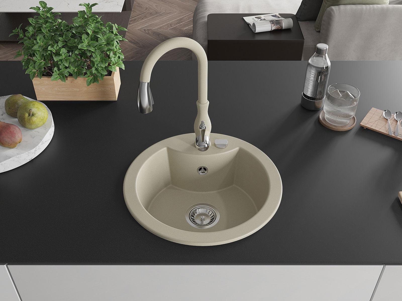 The sink is made of high quality granite. It is an elegant and, above all, practical complement to every kitchen, regardless of its style. High quality and granite durability ensure many years of use.