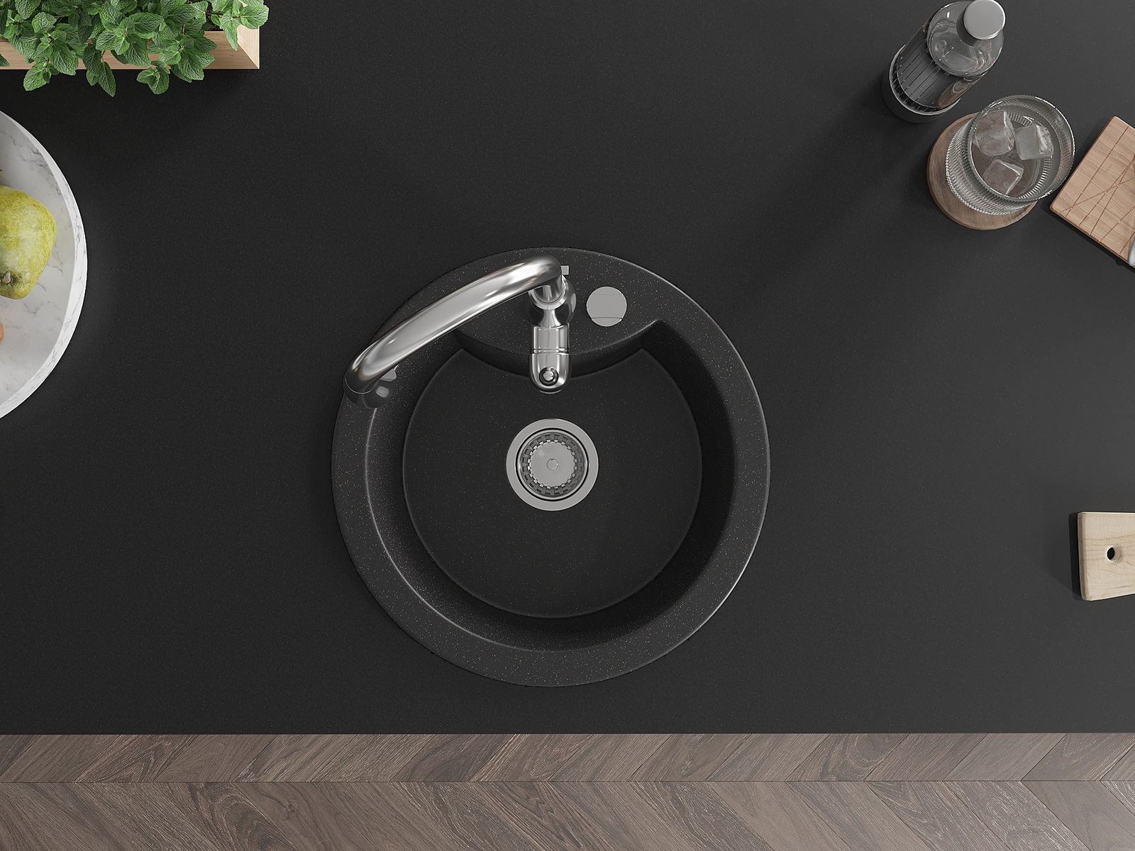 The sink is made of high quality granite. It is an elegant and, above all, practical complement to every kitchen, regardless of its style. High quality and granite durability ensure many years of use.