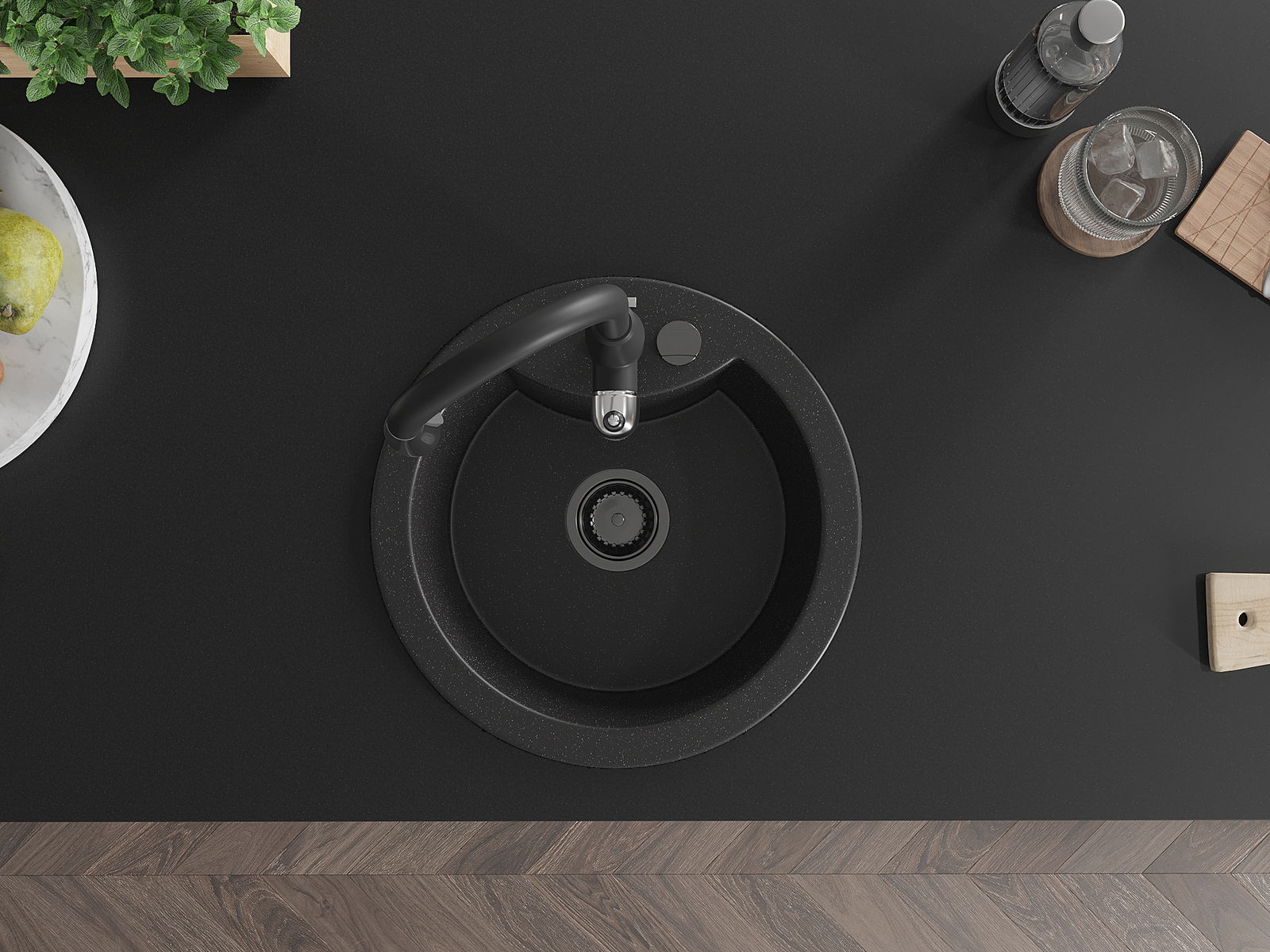 The sink is made of high quality granite. It is an elegant and, above all, practical complement to every kitchen, regardless of its style. High quality and granite durability ensure many years of use.