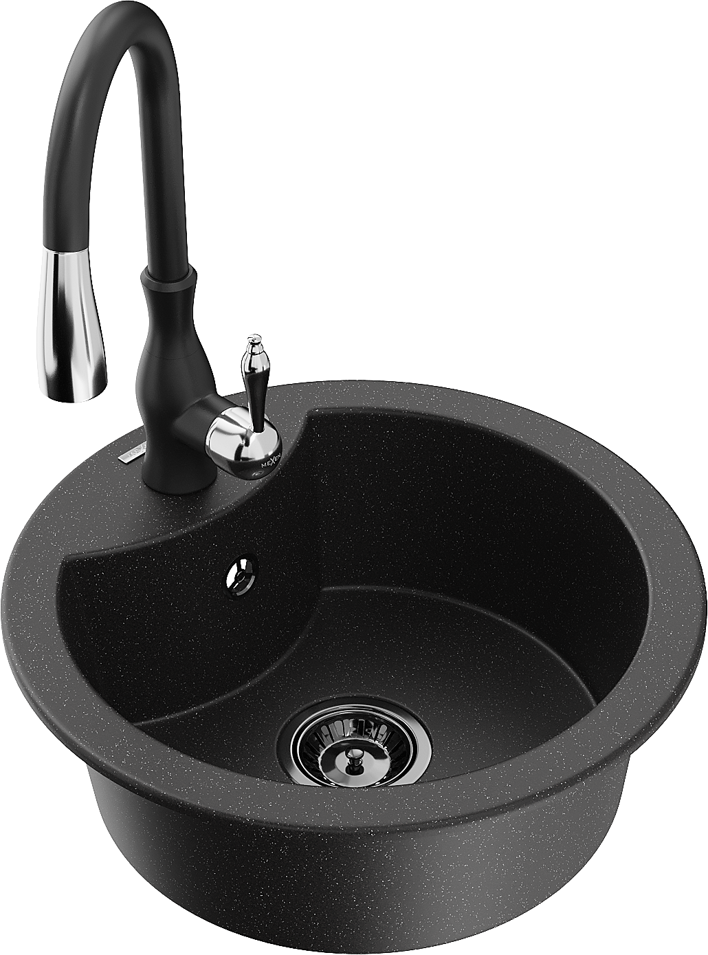 Mexen Diego granite sink 1-bowl with Savita kitchen tap, black/silver metallic - 6512-73-672601-70-B