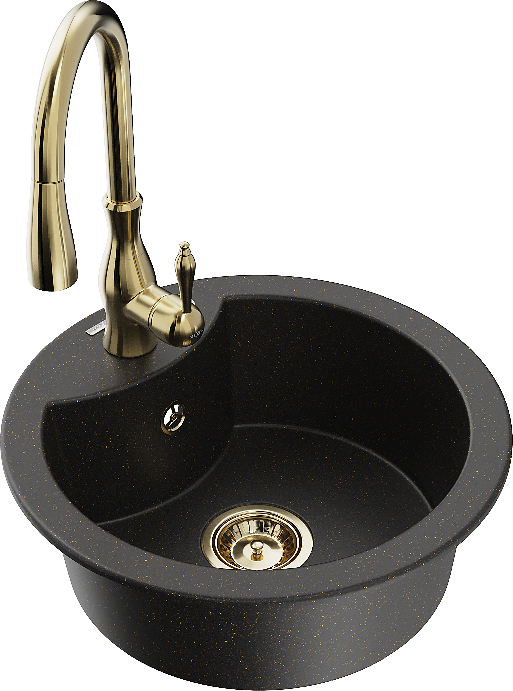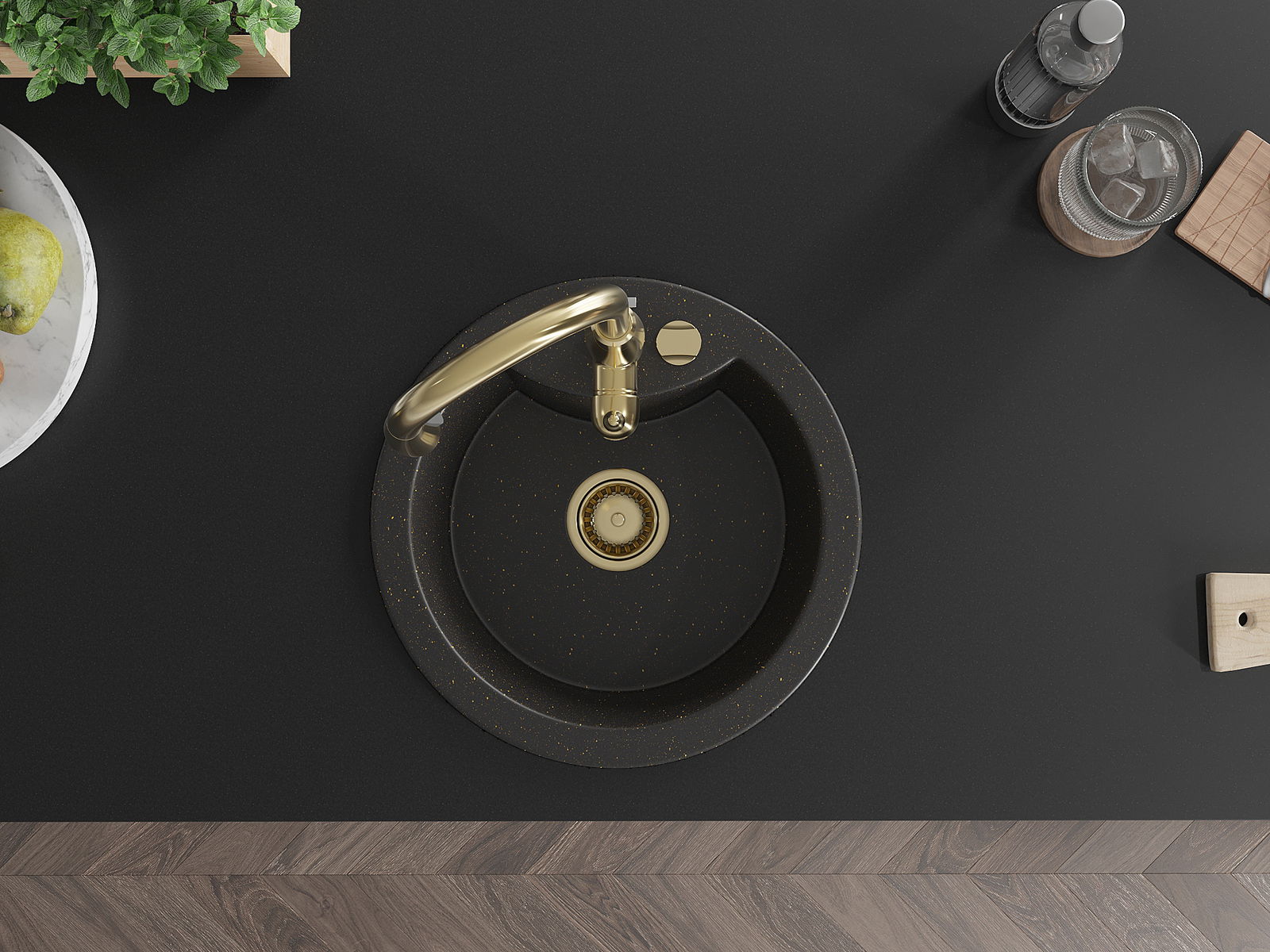 Mexen Diego 1-bowl granite sink with Savita kitchen tap, black/gold metallic - 6512-75-672601-50