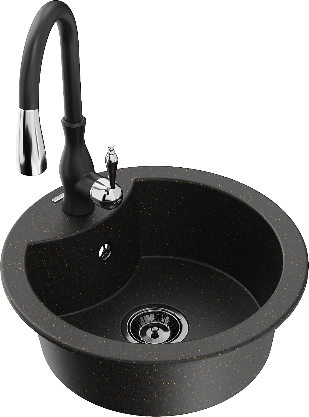 Mexen Diego granite sink 1-bowl with Savita kitchen tap, black/gold metallic - 6512-75-672601-70-B