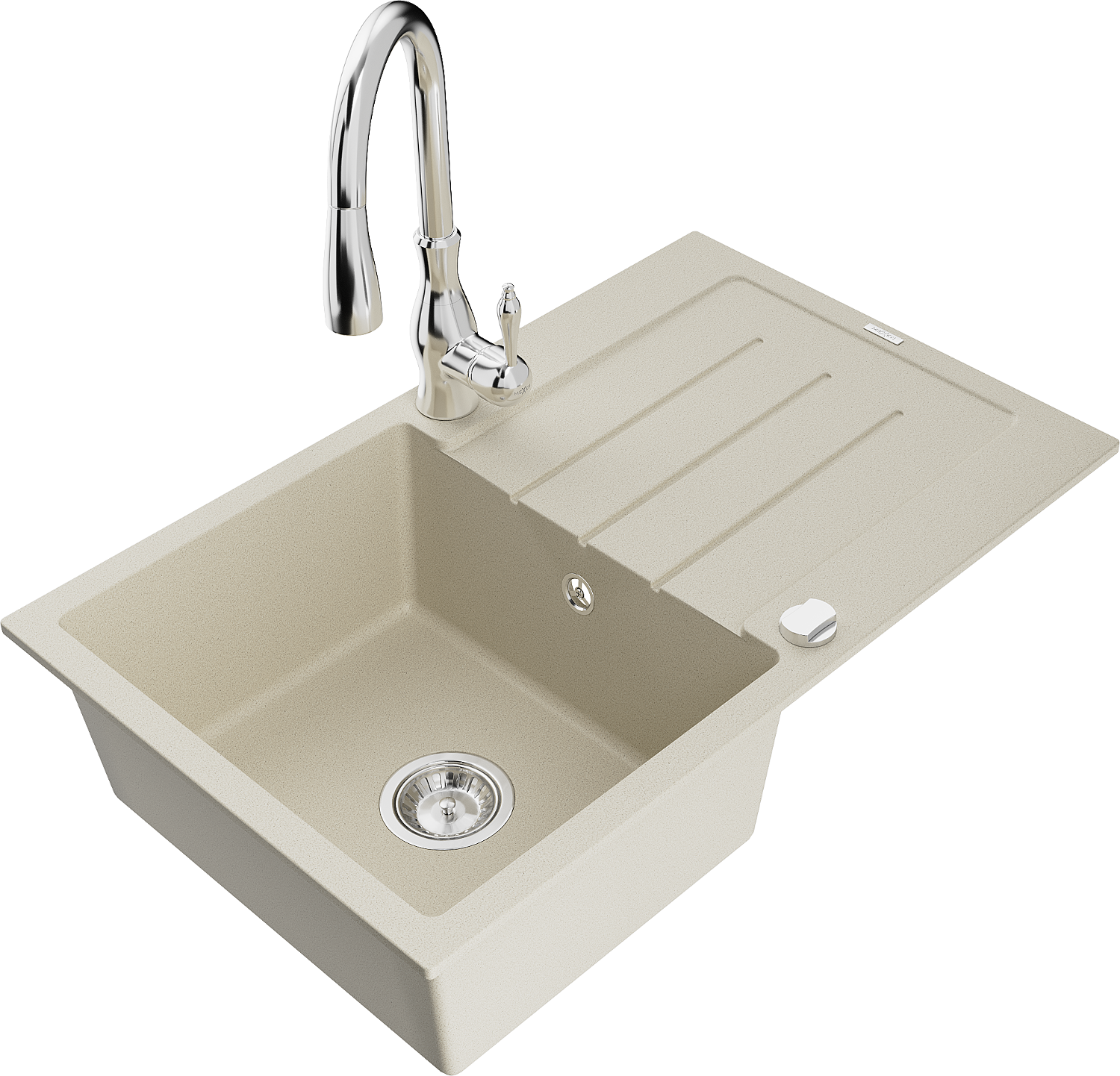 Mexen Bruno granite sink, 1-bowl with drainer and Savita kitchen tap, beige - 6513-69-672601-00
