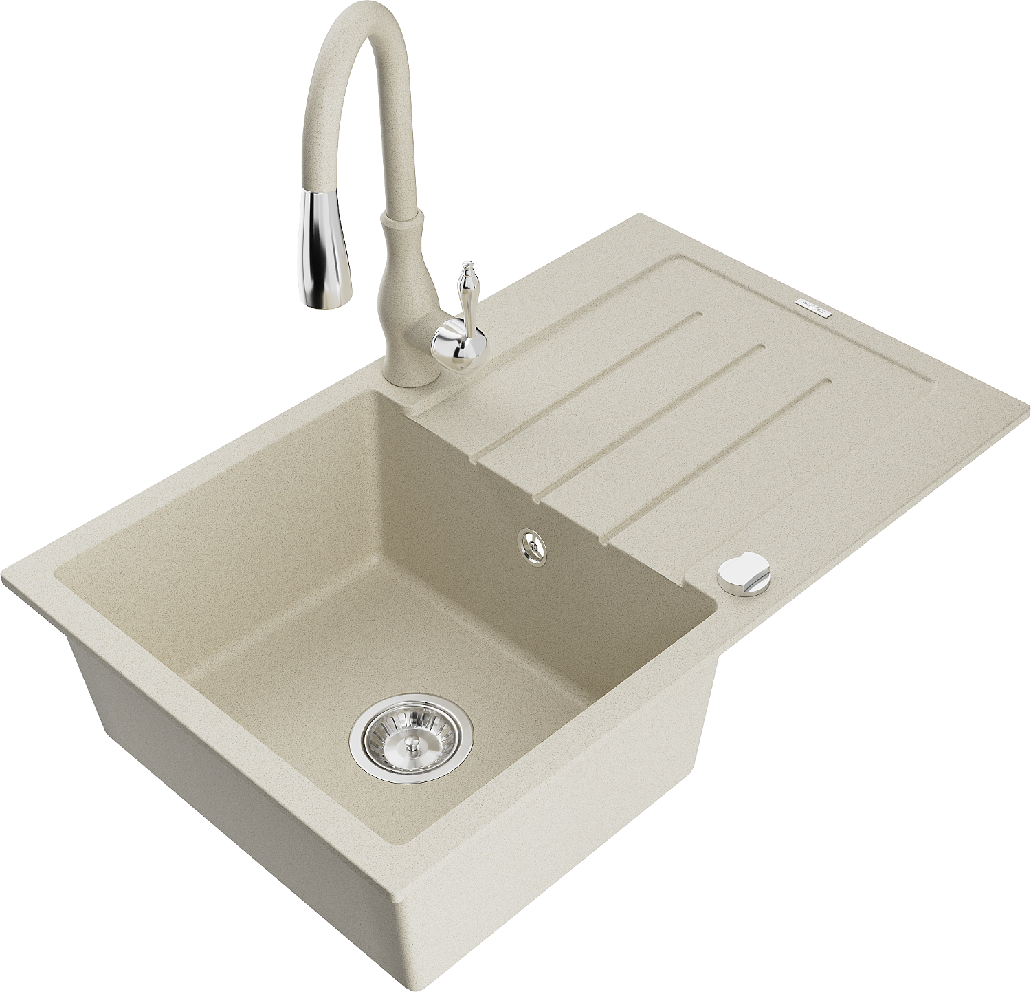 Mexen Bruno 1-bowl granite sink with drainer and Savita kitchen tap, beige - 6513-69-672601-69