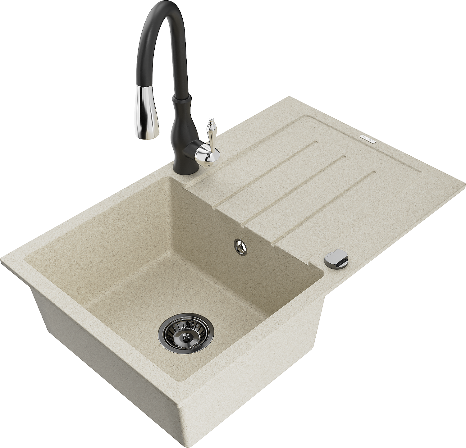 The sink is made of high quality granite. It is an elegant and, above all, practical complement to every kitchen, regardless of its style. High quality and granite durability ensure many years of use.