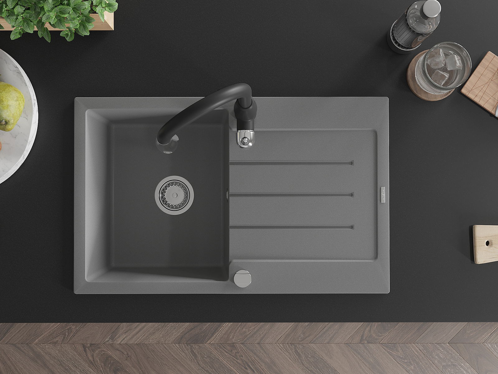 The sink is made of high quality granite. It is an elegant and, above all, practical complement to every kitchen, regardless of its style. High quality and granite durability ensure many years of use.