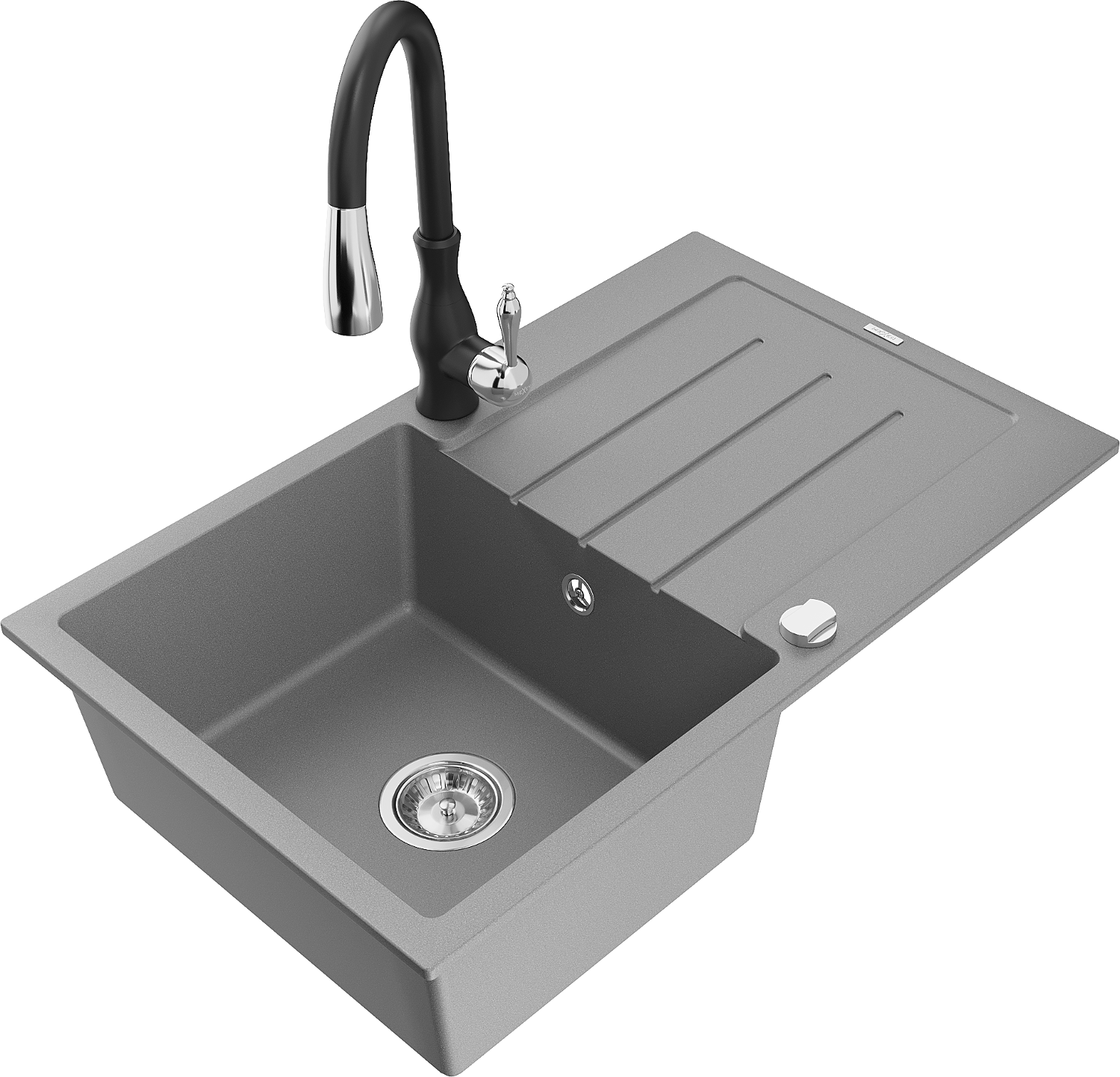 Mexen Bruno 1-Bowl Granite Sink with Drainer and Savita Kitchen Tap, Grey - 6513-71-672601-70