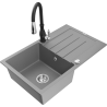 Mexen Bruno 1-bowl granite sink with drainer and Savita kitchen tap, black/silver metallic - 6513-73-672601-70