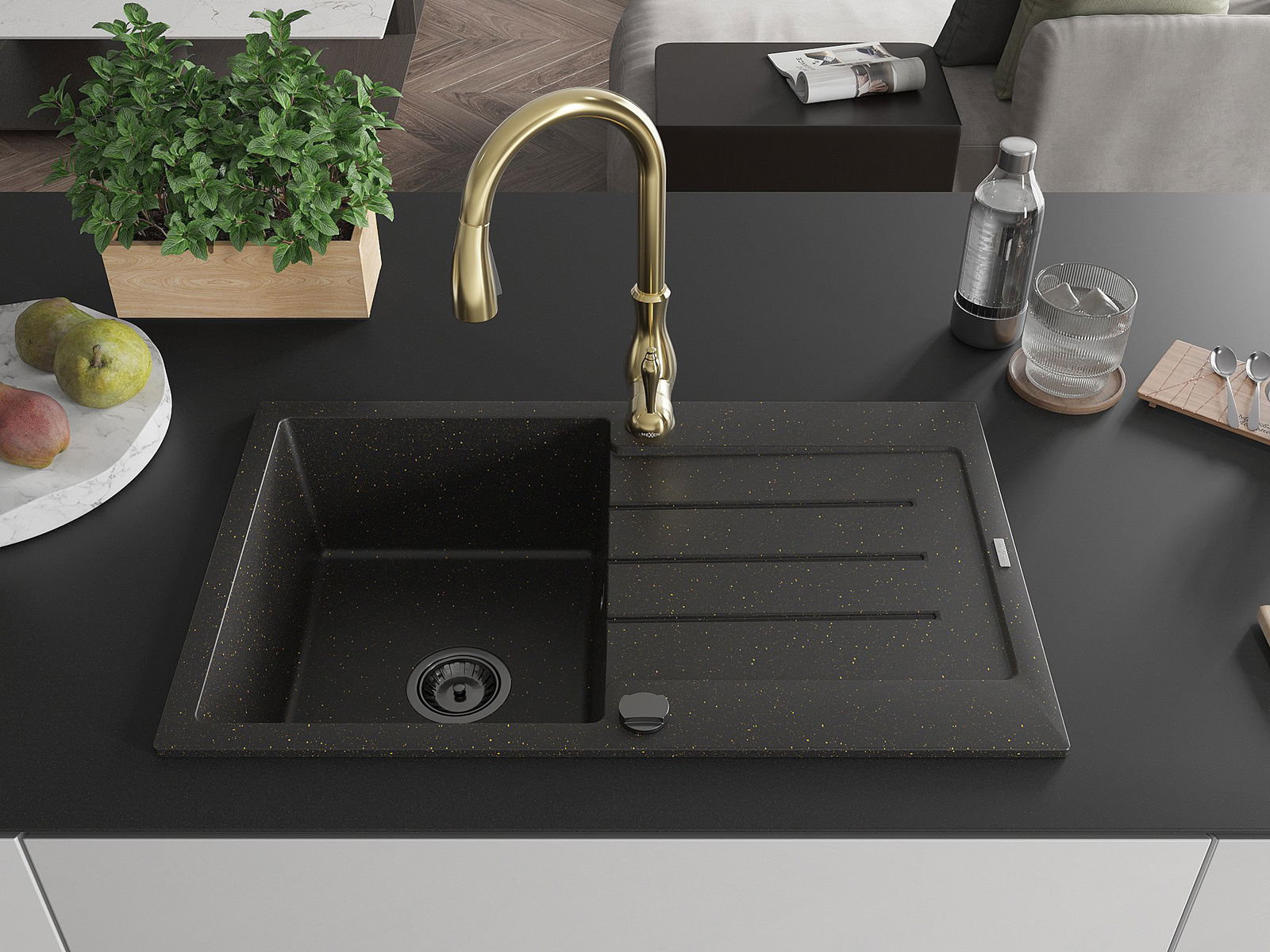 The sink is made of high quality granite. It is an elegant and, above all, practical complement to every kitchen, regardless of its style. High quality and granite durability ensure many years of use.