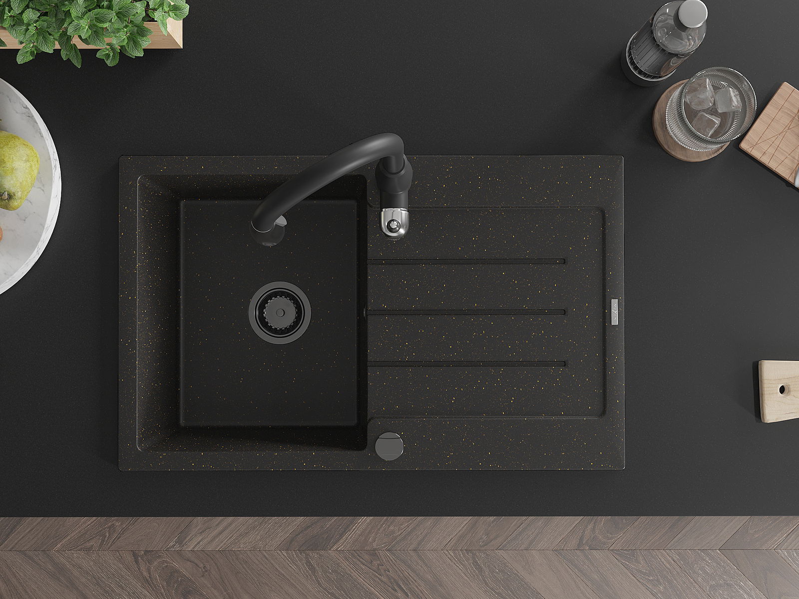 The sink is made of high quality granite. It is an elegant and, above all, practical complement to every kitchen, regardless of its style. High quality and granite durability ensure many years of use.