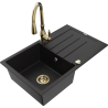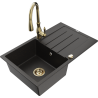 Mexen Bruno granite sink 1-bowl with drainer and Savita kitchen tap, black speckled - 6513-76-672601-50