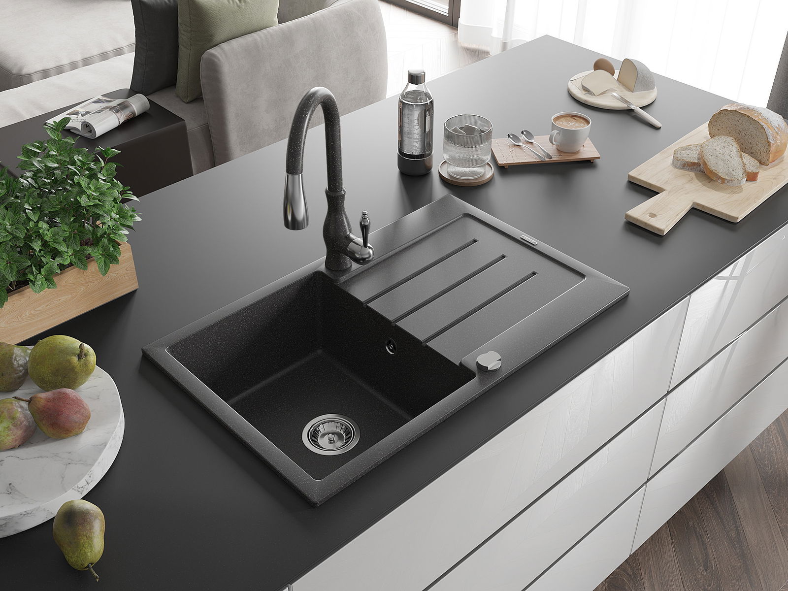 The sink is made of high quality granite. It is an elegant and, above all, practical complement to every kitchen, regardless of its style. High quality and granite durability ensure many years of use.