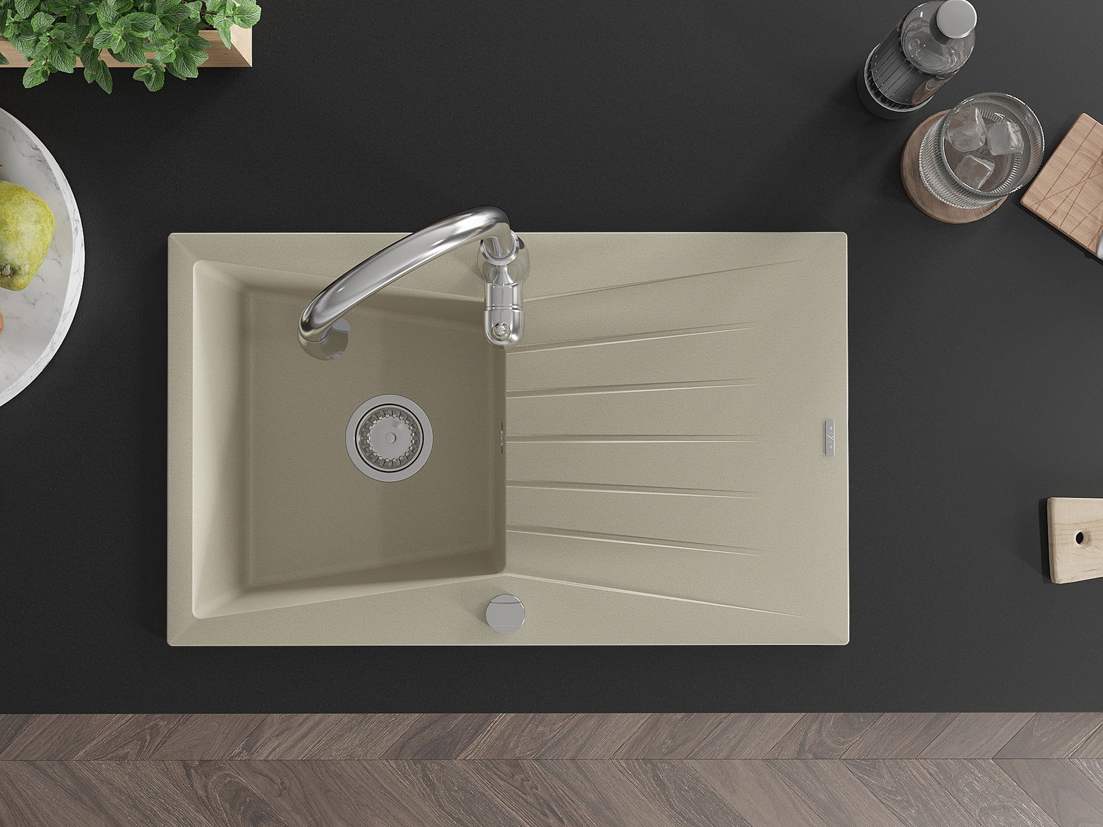 The sink is made of high quality granite. It is an elegant and, above all, practical complement to every kitchen, regardless of its style. High quality and granite durability ensure many years of use.