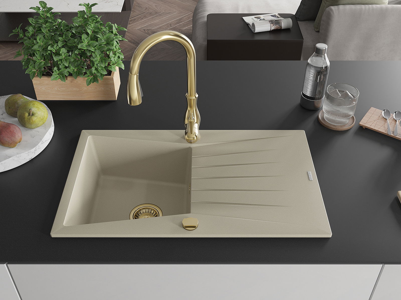 The sink is made of high quality granite. It is an elegant and, above all, practical complement to every kitchen, regardless of its style. High quality and granite durability ensure many years of use.