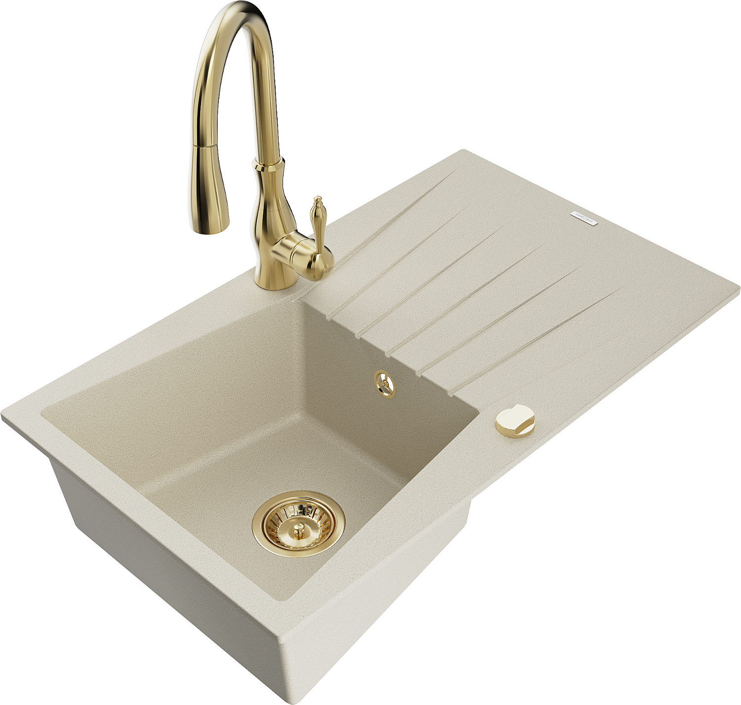 Mexen Cesar 1-bowl granite kitchen sink with drainer and Savita tap, beige - 6514-69-672601-50