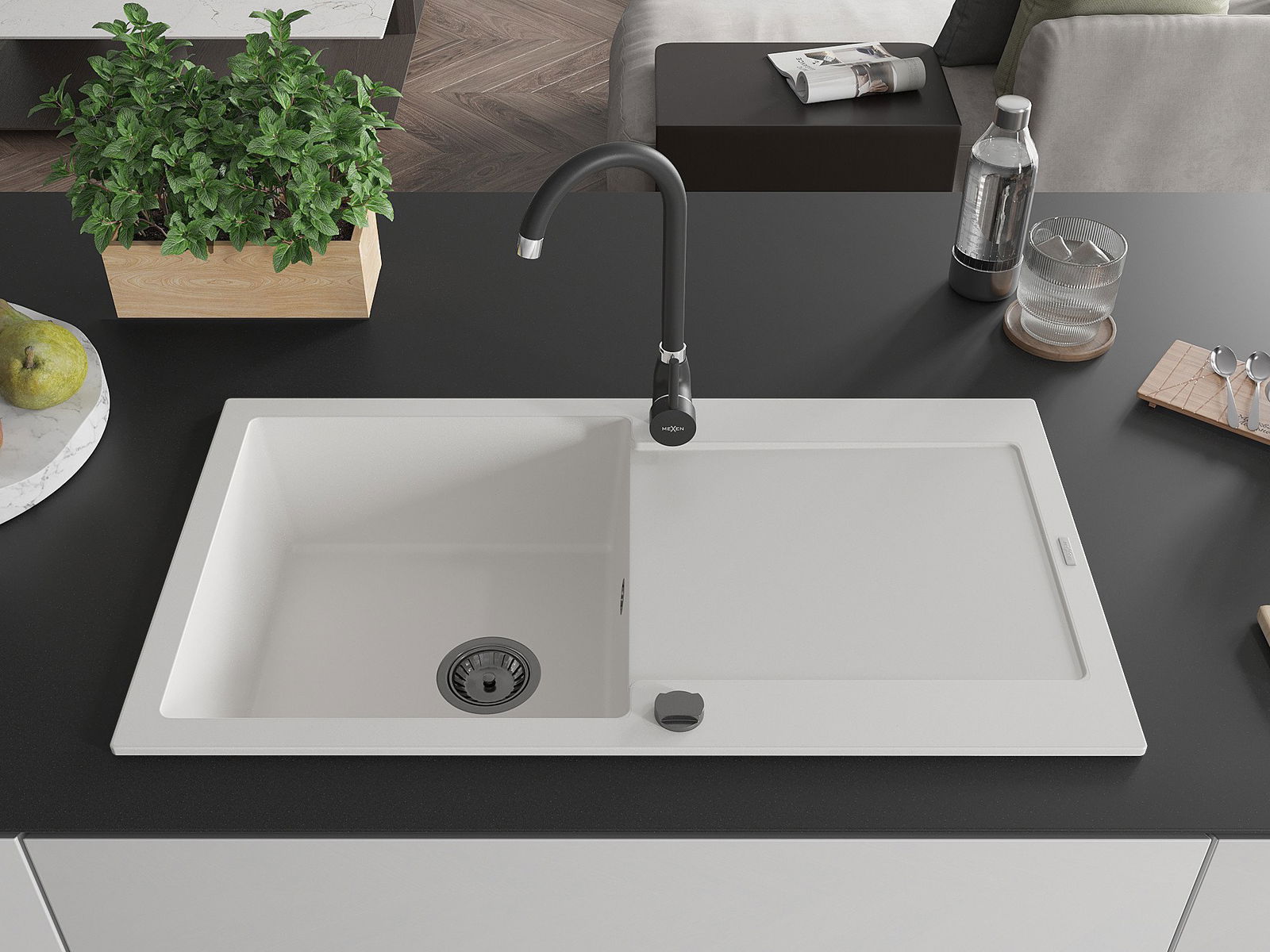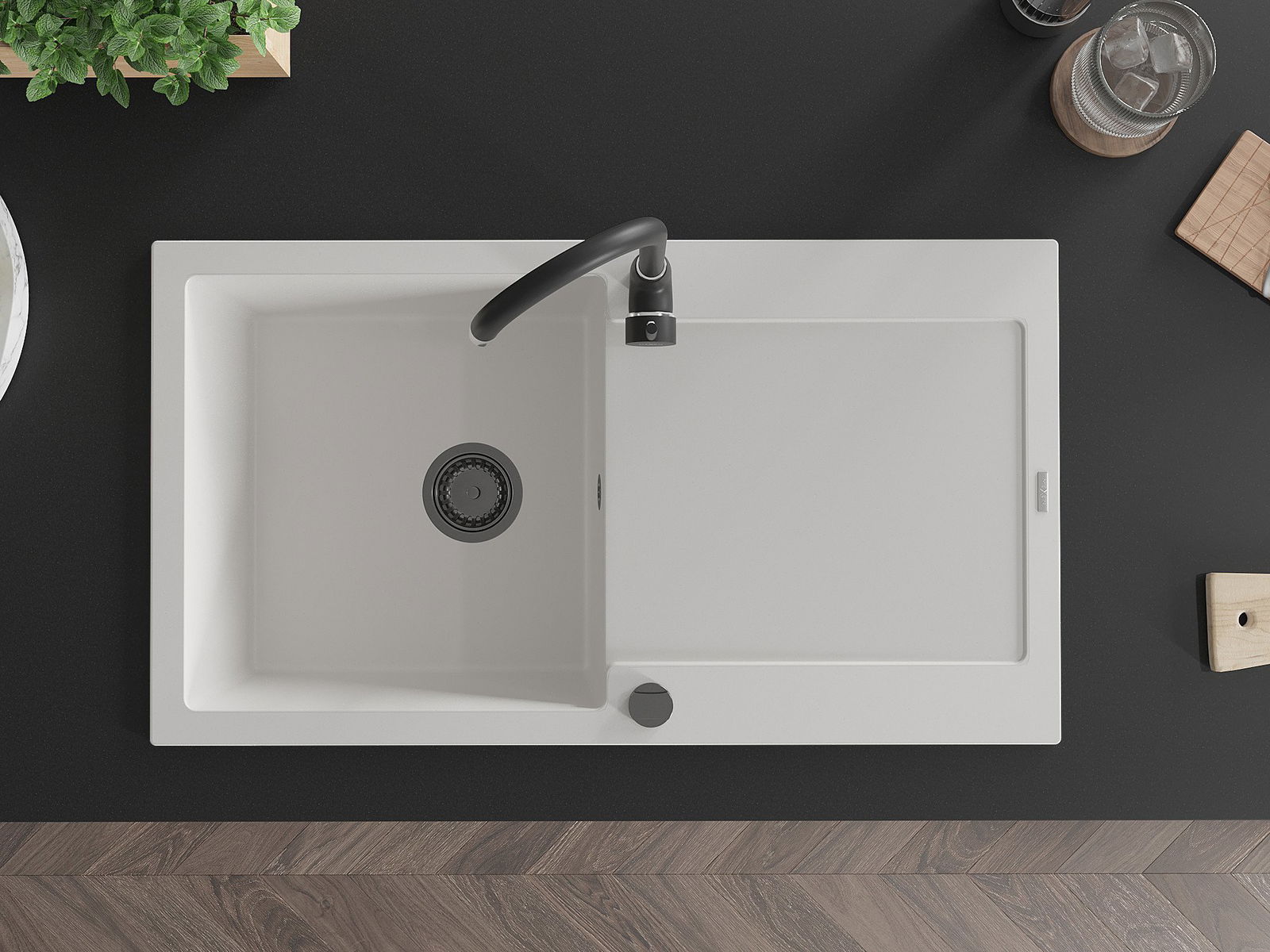 The surface of the sink is resistant to stains and discoloration, thanks to which it is easy to clean and retains its color for a long time. Aesthetic and practically complementing every kitchen.