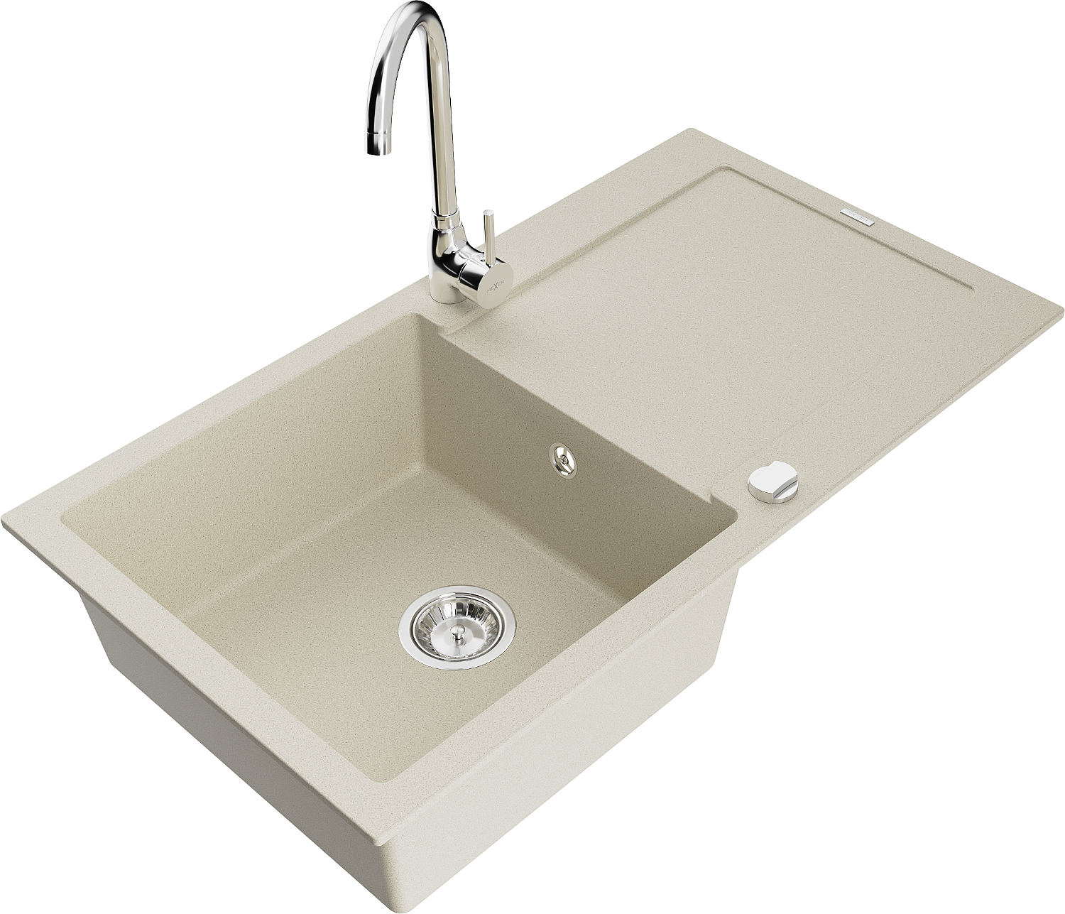 Mexen Leo granite kitchen sink 1-bowl with drainer and Telma kitchen tap, beige - 6501-69-670200-00
