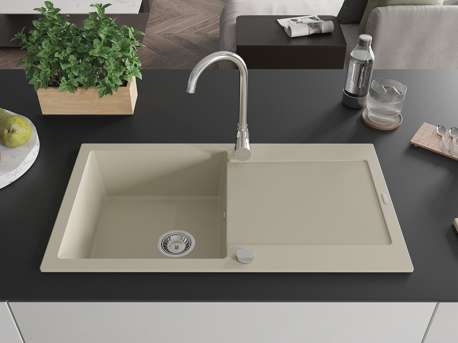 The surface of the sink is resistant to stains and discoloration, thanks to which it is easy to clean and retains its color for a long time. Aesthetic and practically complementing every kitchen.