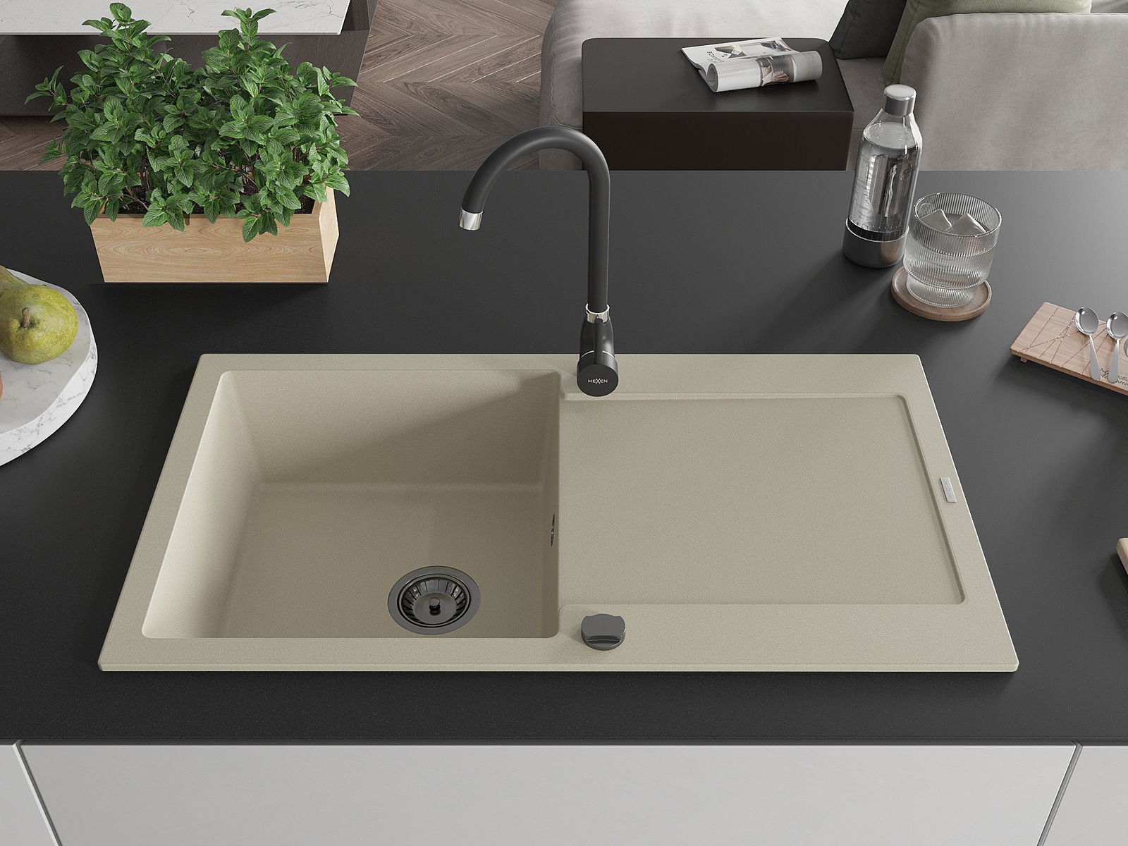 The surface of the sink is resistant to stains and discoloration, thanks to which it is easy to clean and retains its color for a long time. Aesthetic and practically complementing every kitchen.
