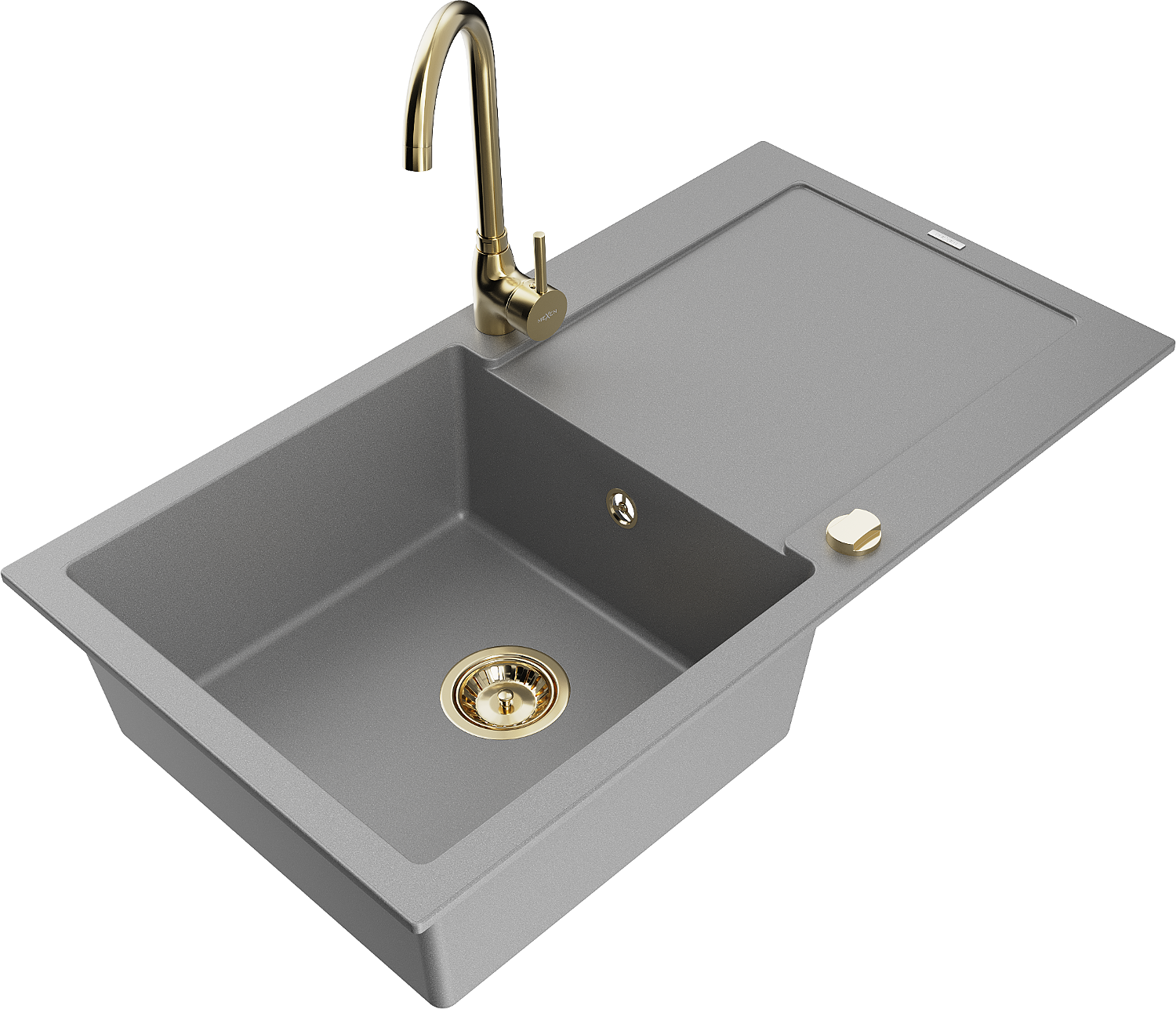 Mexen Leo 1-bowl granite sink with drainer and Telma kitchen tap, grey - 6501-71-670200-50