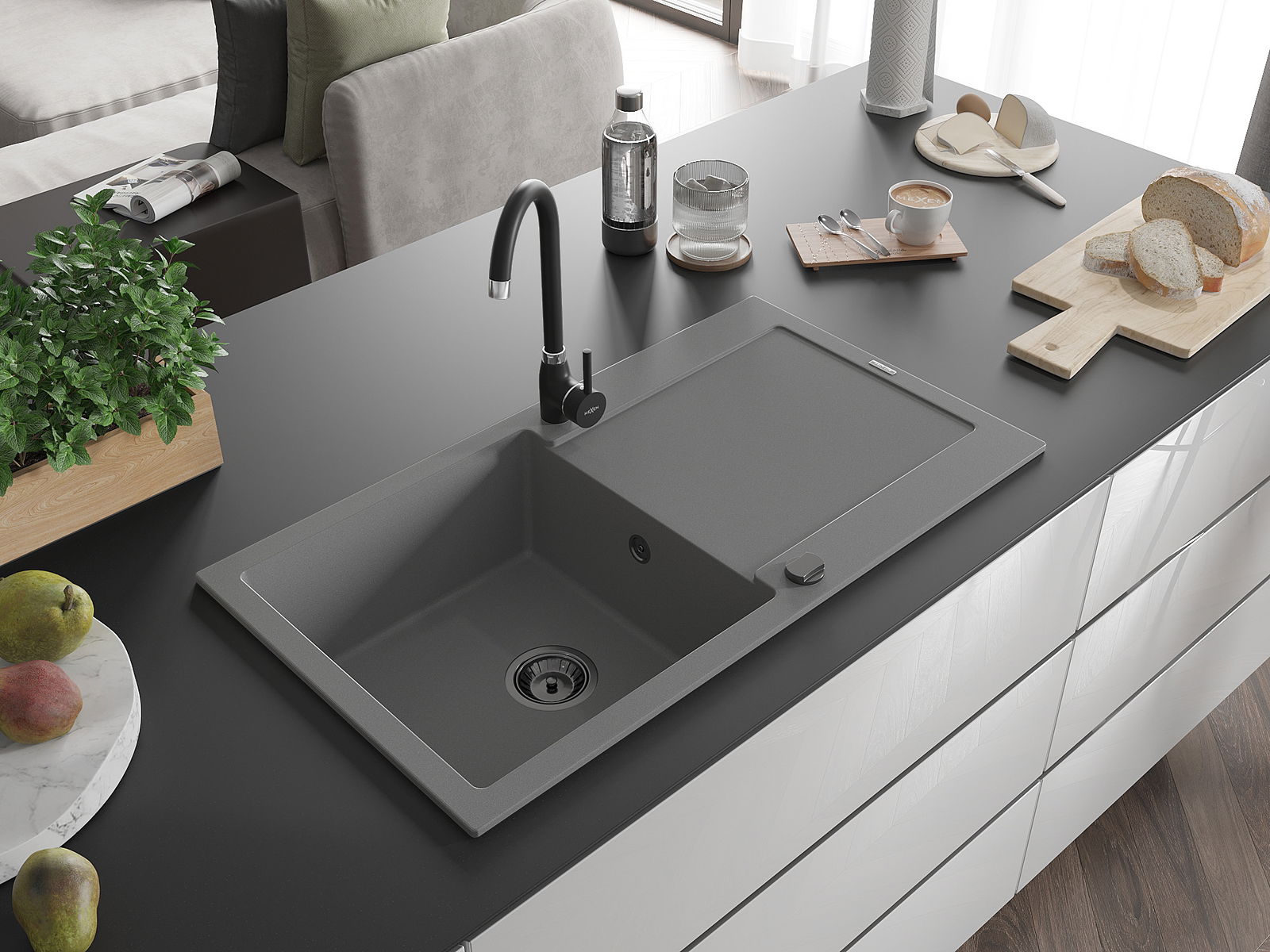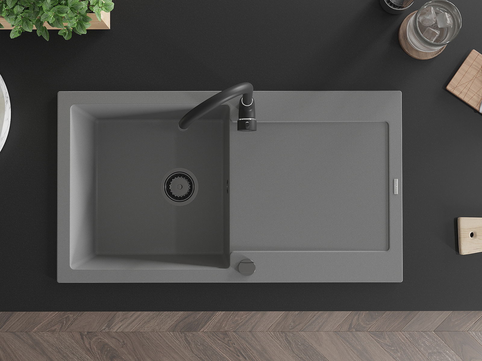 The sink is made of high quality granite. It is an elegant and, above all, practical complement to every kitchen, regardless of its style. High quality and granite durability ensure many years of use.