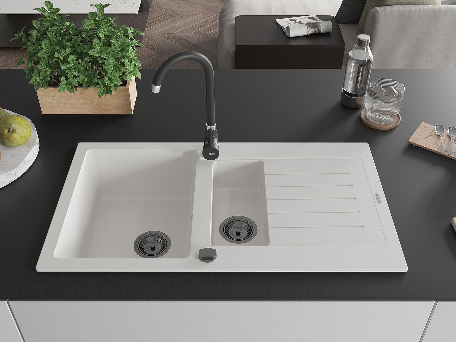 The surface of the sink is resistant to stains and discoloration, thanks to which it is easy to clean and retains its color for a long time. Aesthetic and practically complementing every kitchen.