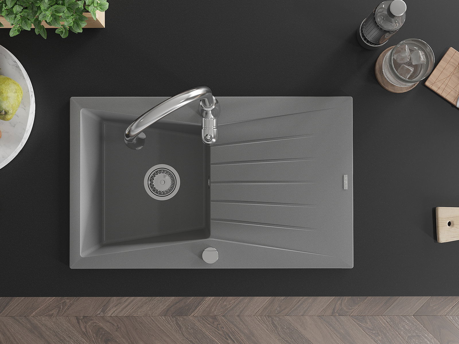Mexen Cesar one-bowl granite sink with drainer and Savita kitchen tap, grey - 6514-71-672601-00