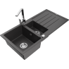Mexen Andres granite sink 1.5-bowl with drainer and Rita kitchen tap, grey - 6515-71-670300-71