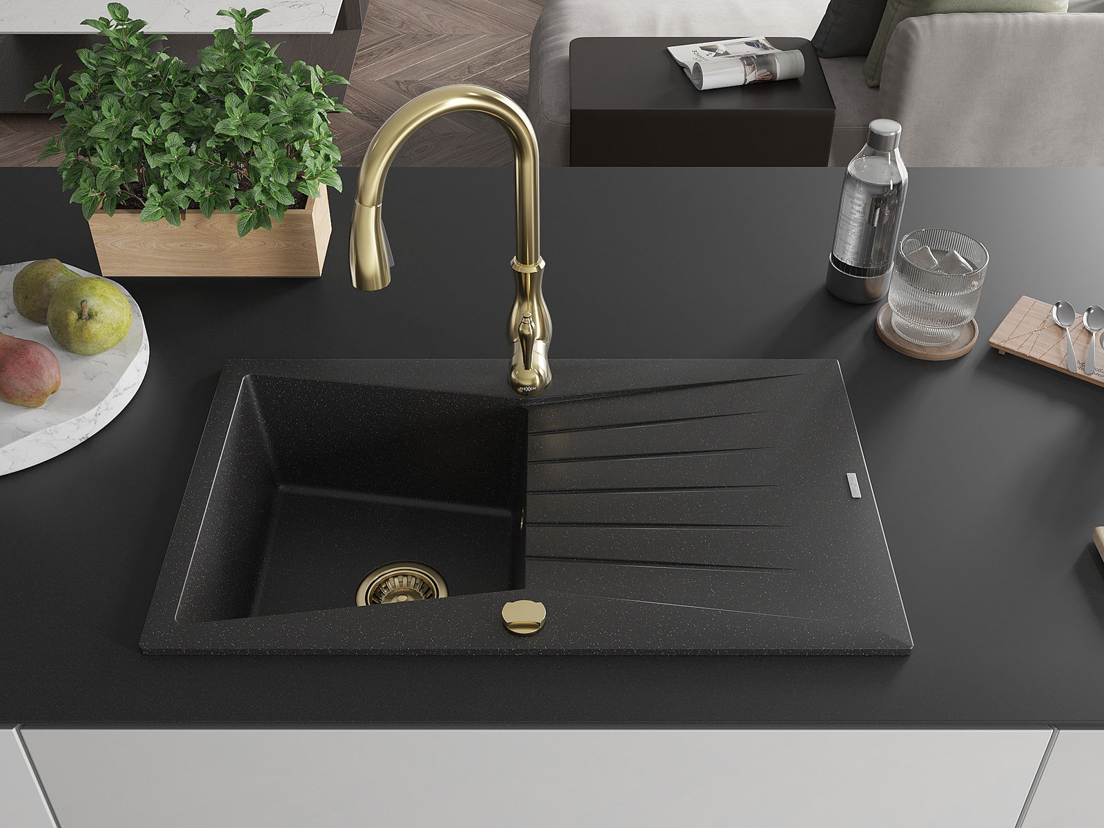 The sink is made of high quality granite. It is an elegant and, above all, practical complement to every kitchen, regardless of its style. High quality and granite durability ensure many years of use.