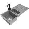 Mexen Andres granite sink 1.5-bowl with drainer and Rita kitchen tap, black/silver metallic - 6515-73-670300-70