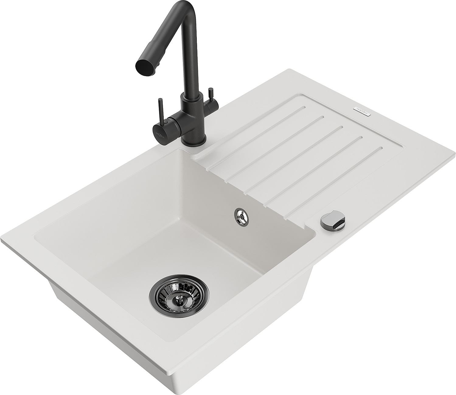 The surface of the sink is resistant to stains and discolouration, making it easy to maintain cleanliness and retain its colour for a long time of use. An aesthetic and practical addition to any kitchen.