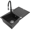 Mexen Cesar single-bowl granite sink with drainer and Savita kitchen tap, speckled black - 6514-76-672601-70