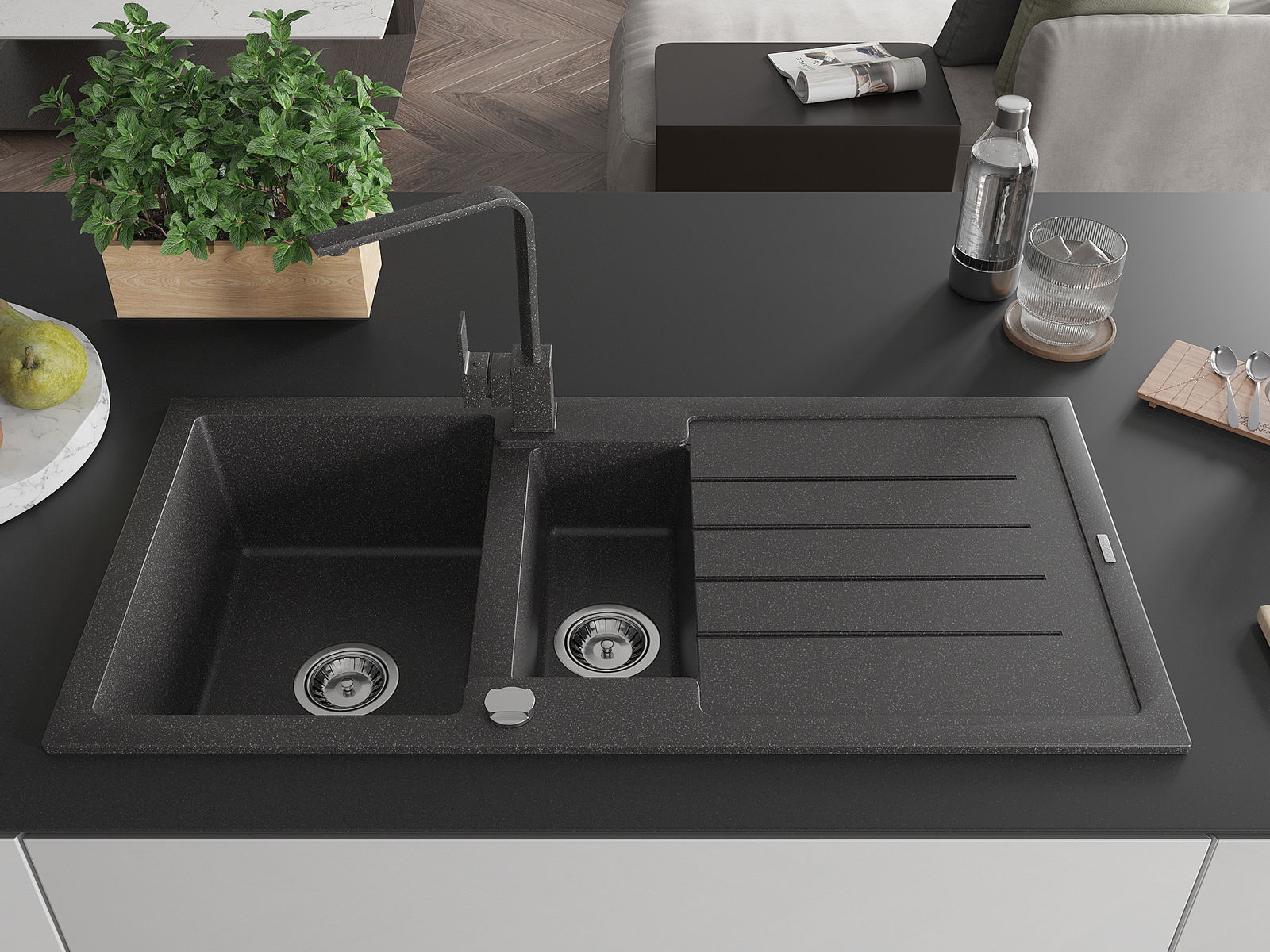 The sink is made of high quality granite. It is an elegant and, above all, practical complement to every kitchen, regardless of its style. High quality and granite durability ensure many years of use.
