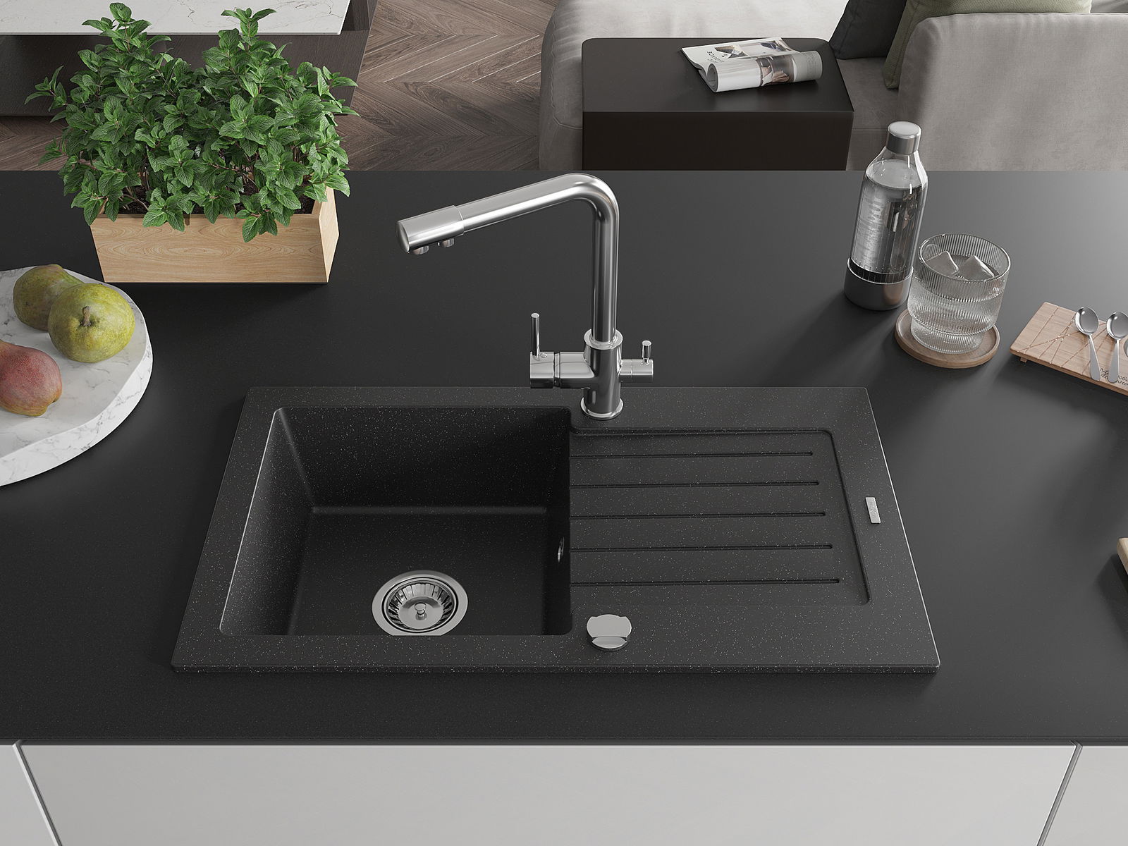 The sink is made from high-quality granite. It serves as an elegant and, above all, practical addition to any kitchen, regardless of its style. The high quality and durability of granite ensure many years of use.
