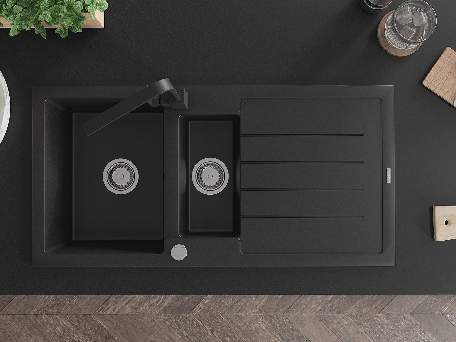 The sink is made of high quality granite. It is an elegant and, above all, practical complement to every kitchen, regardless of its style. High quality and granite durability ensure many years of use.