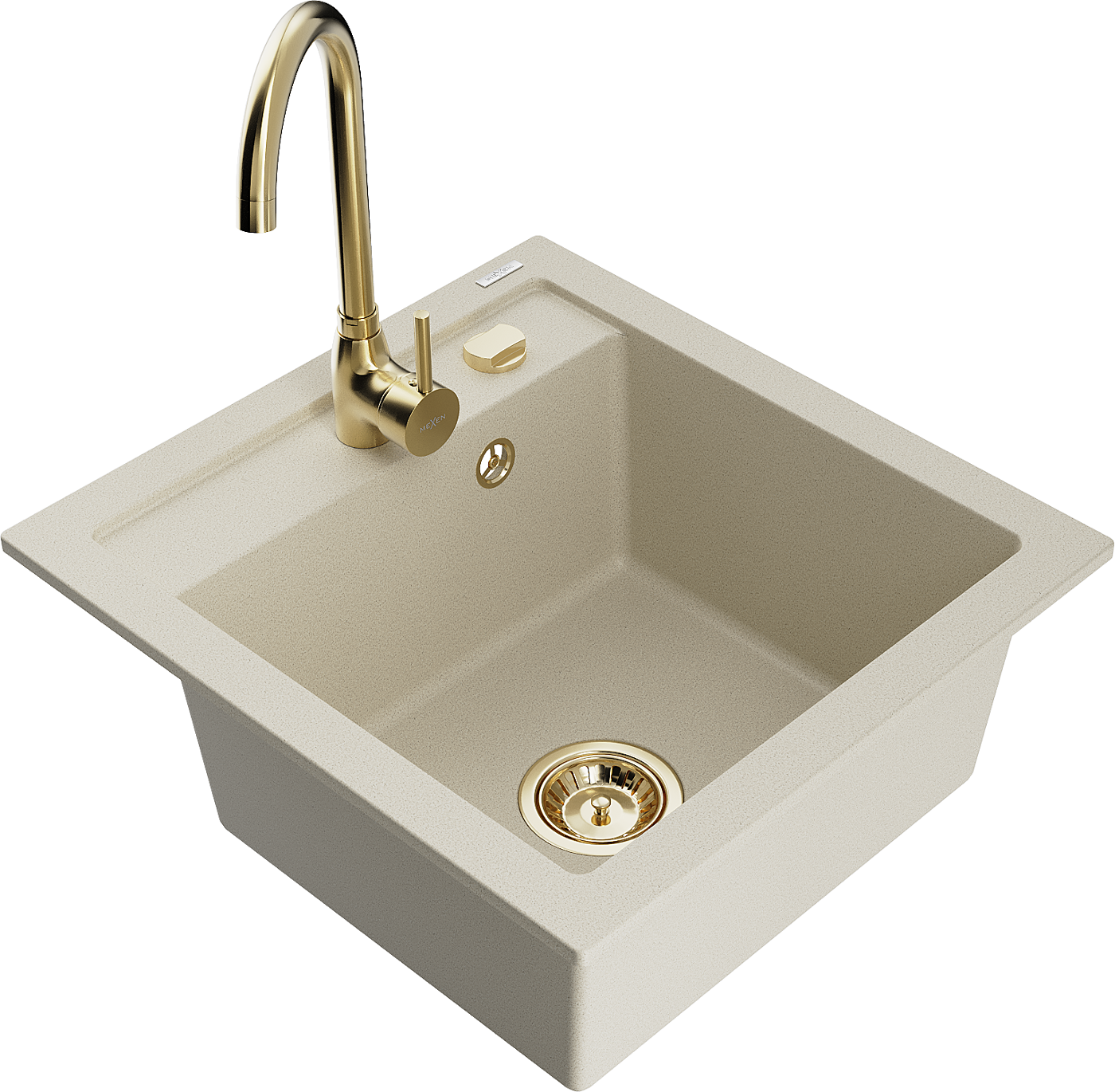 Mexen Vito 1-bowl granite sink with Telma kitchen tap, beige - 6503-69-670200-50