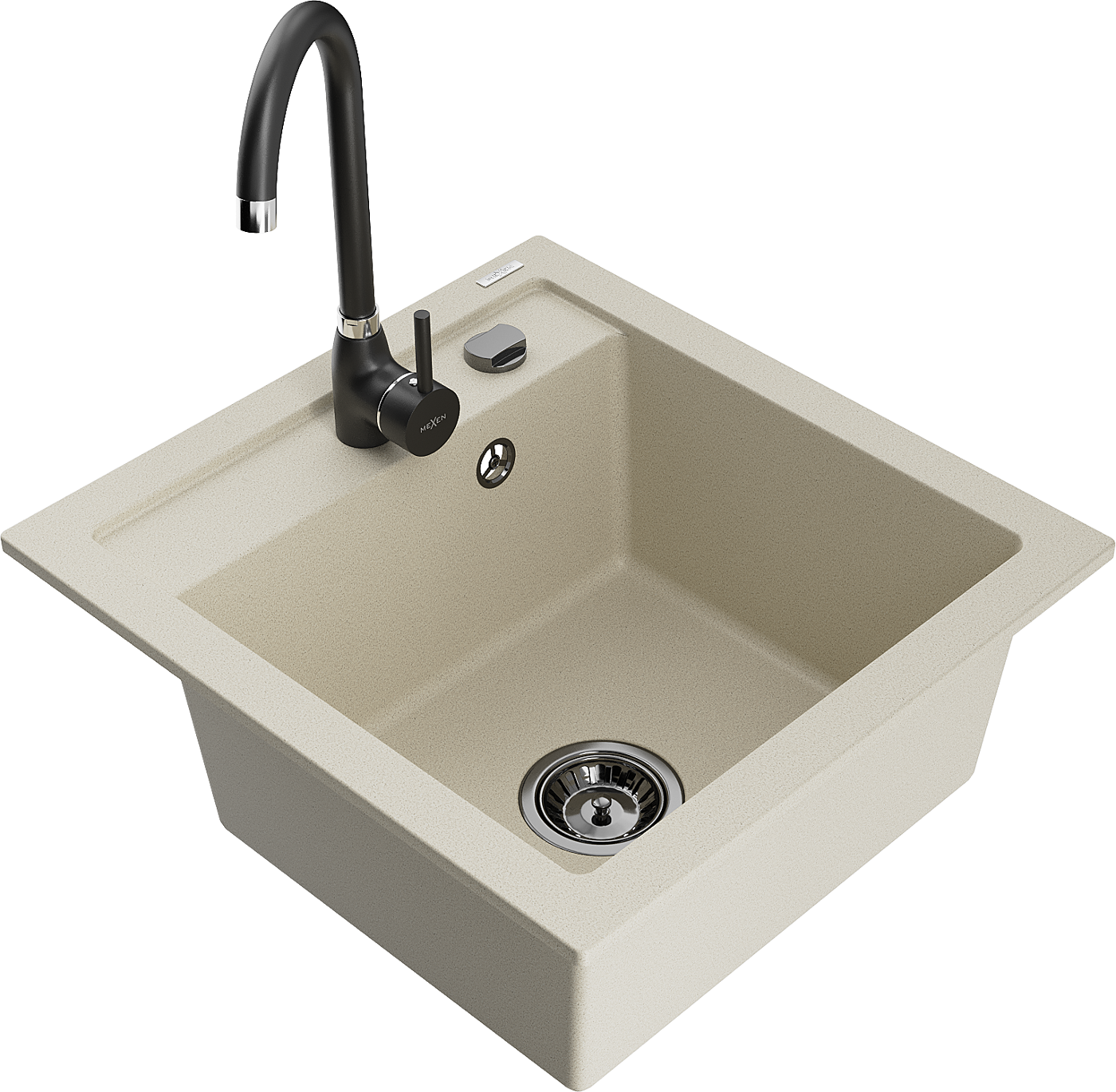 Mexen Vito granite sink 1-bowl with Telma kitchen tap, beige - 6503-69-670200-70