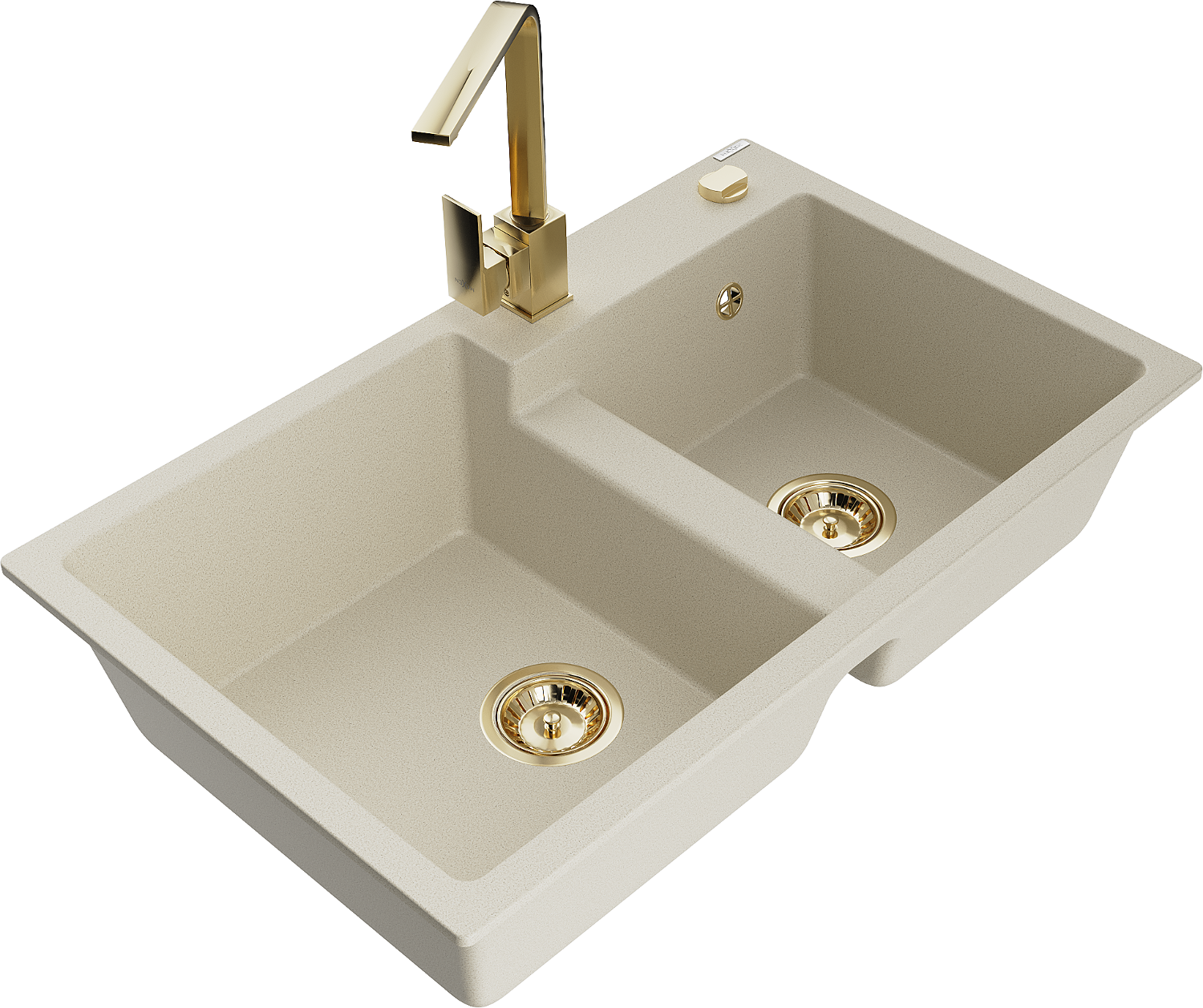Mexen Tomas 2-bowl granite sink with Rita kitchen tap, beige - 6516-69-670300-50