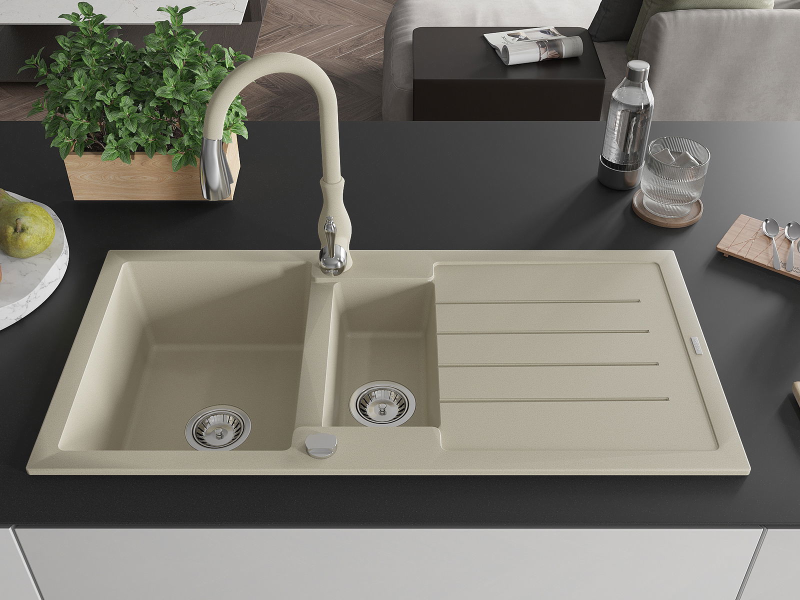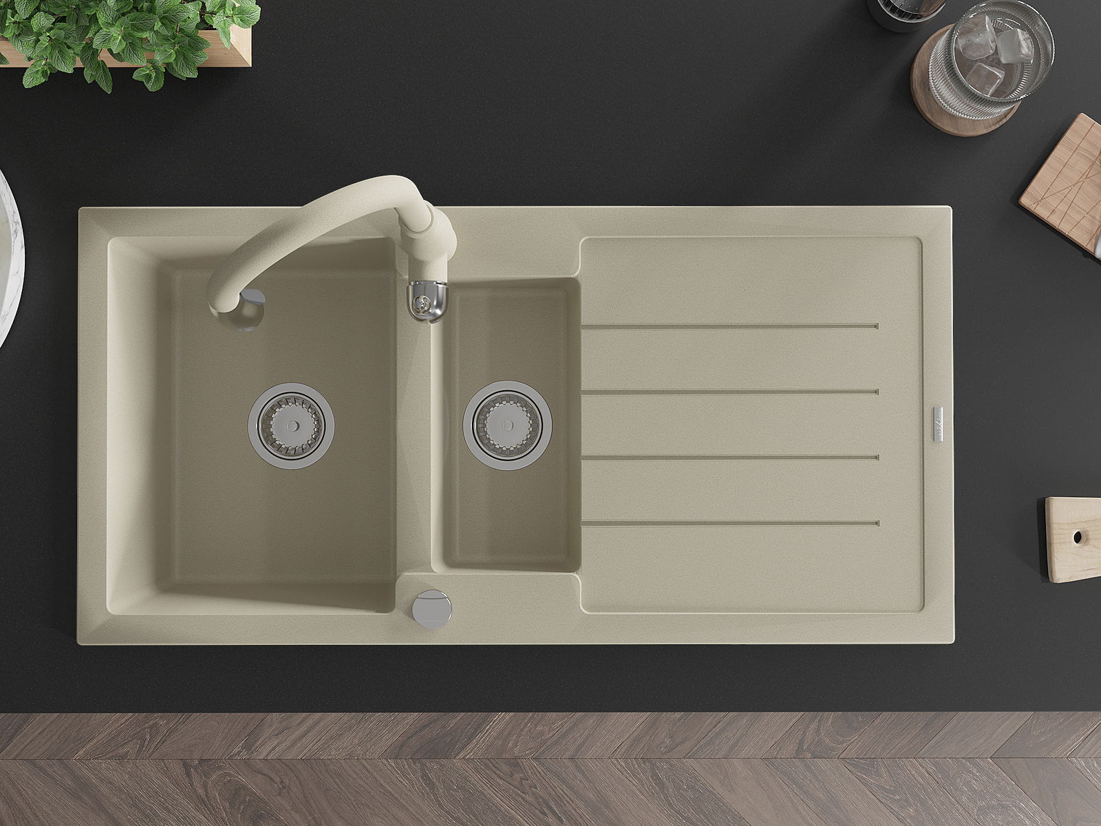 The sink is made of high quality granite. It is an elegant and, above all, practical complement to every kitchen, regardless of its style. High quality and granite durability ensure many years of use.